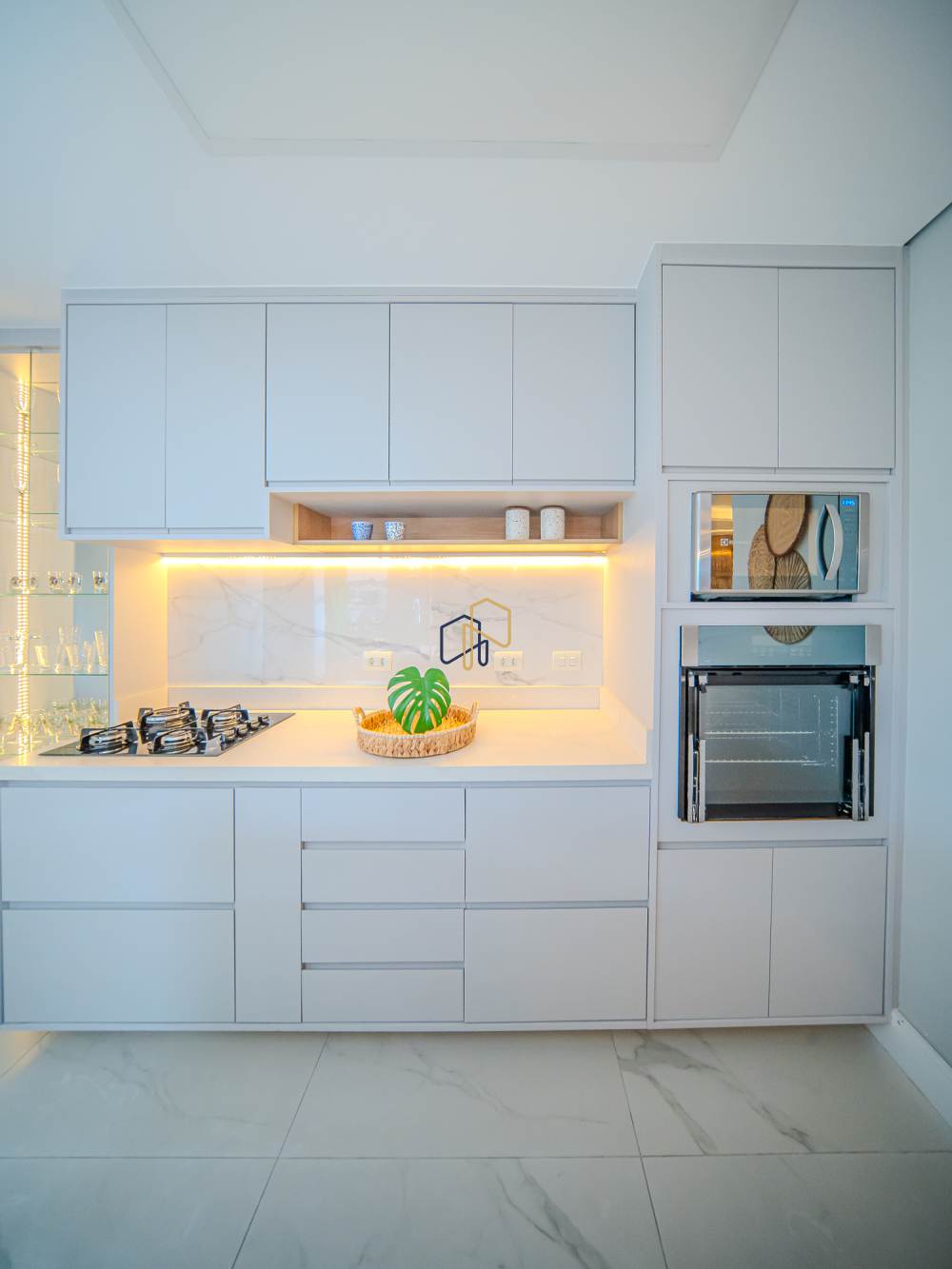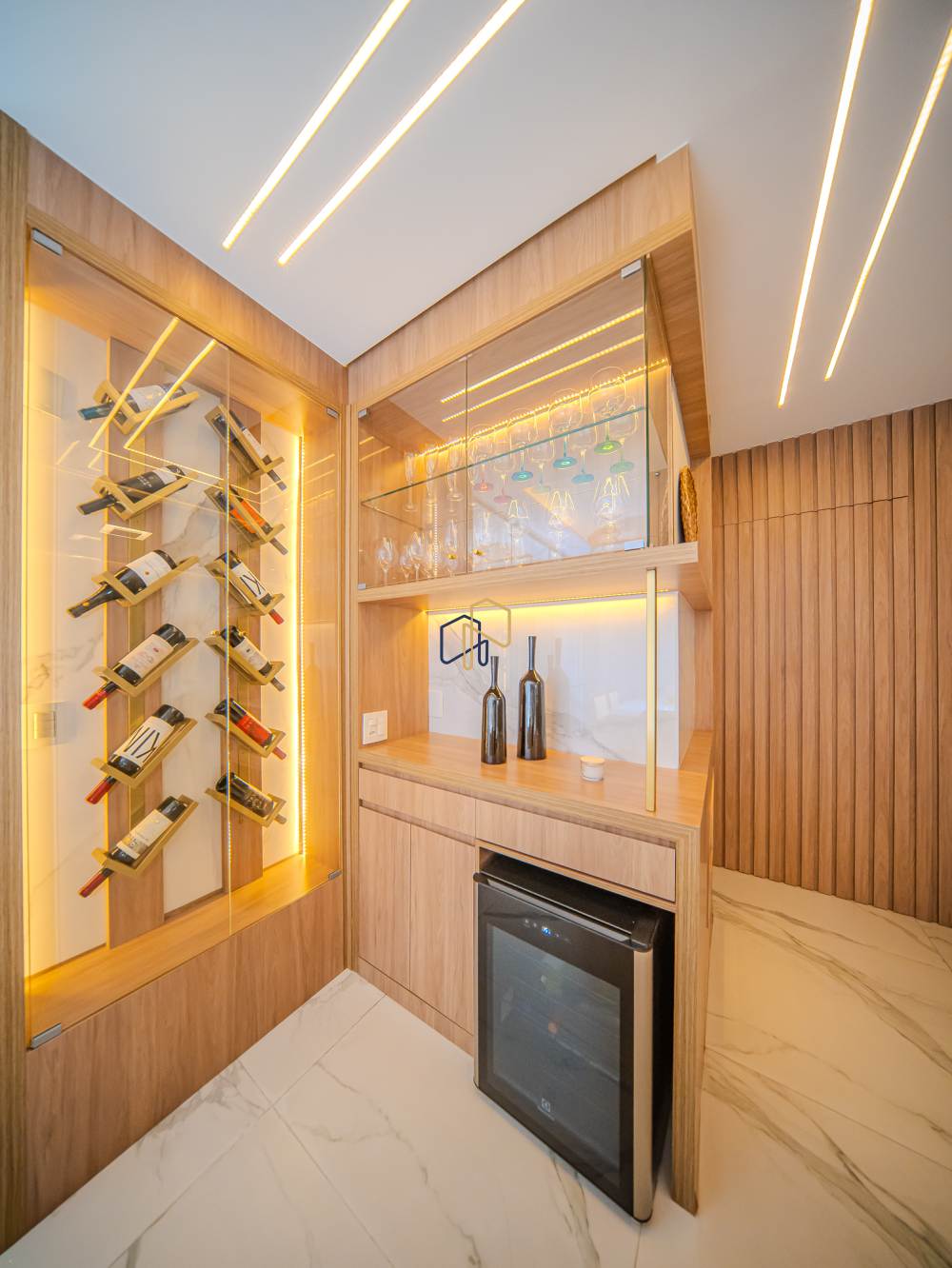 moderno, clean, painel em madeira, adega, cozinha planejada, suíte com closet e uma