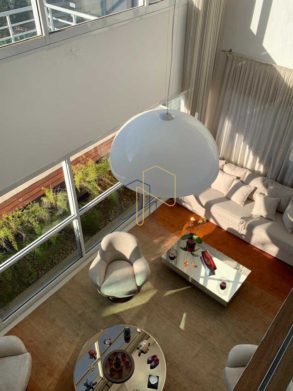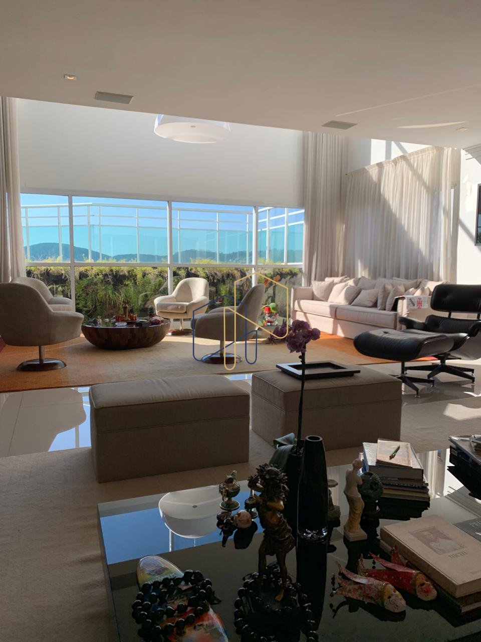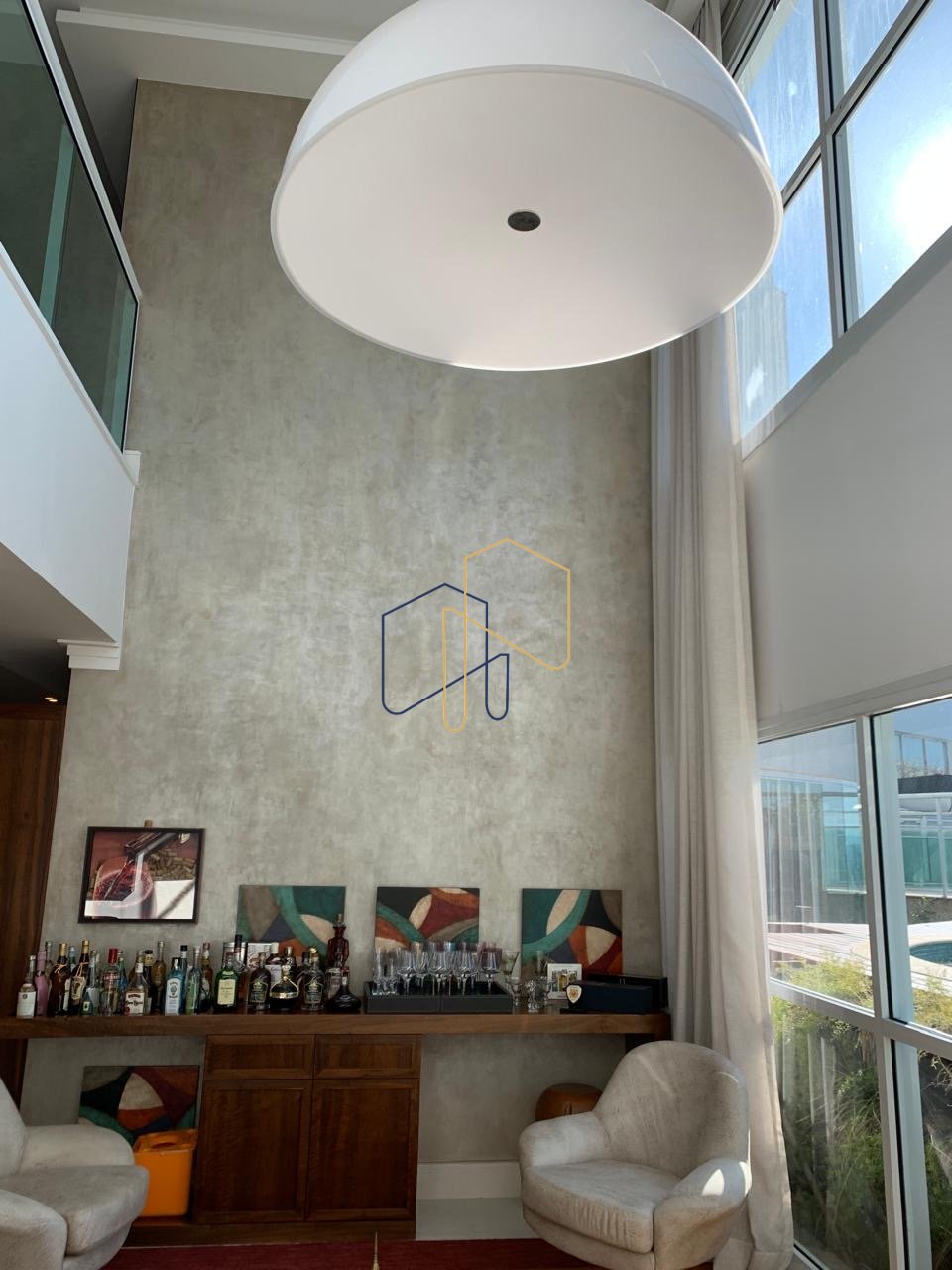 • Sala de Estar: Ambiente com pé-direito duplo de quase 6 metros, proporcionando uma sensação inigualável de amplitude e elegância.