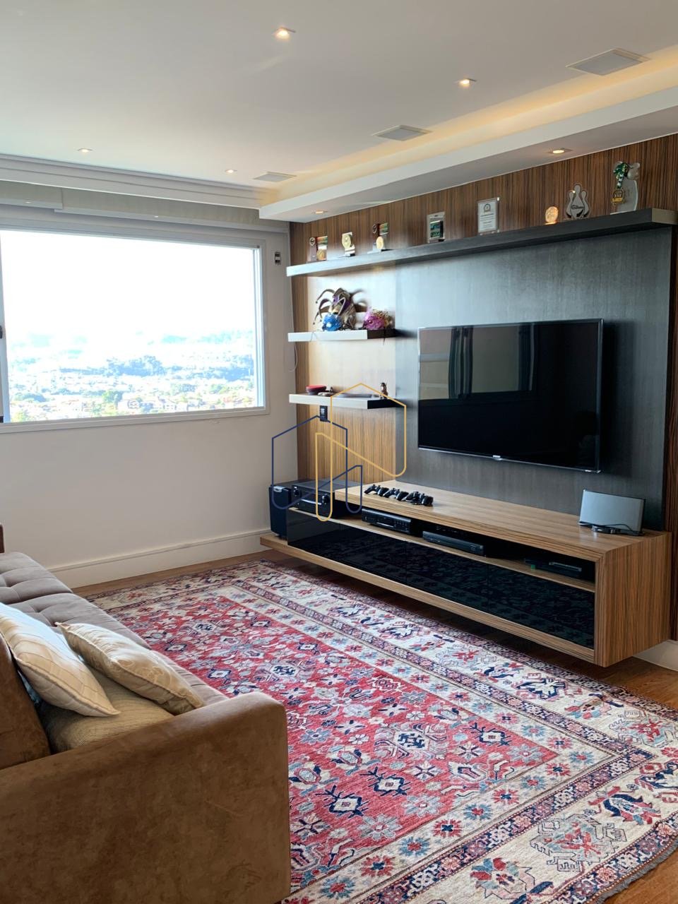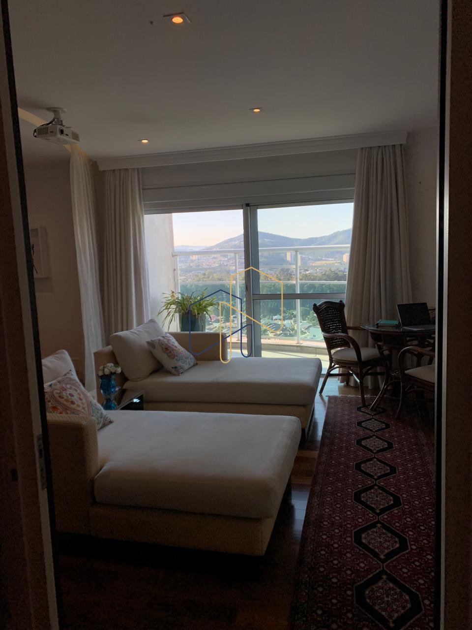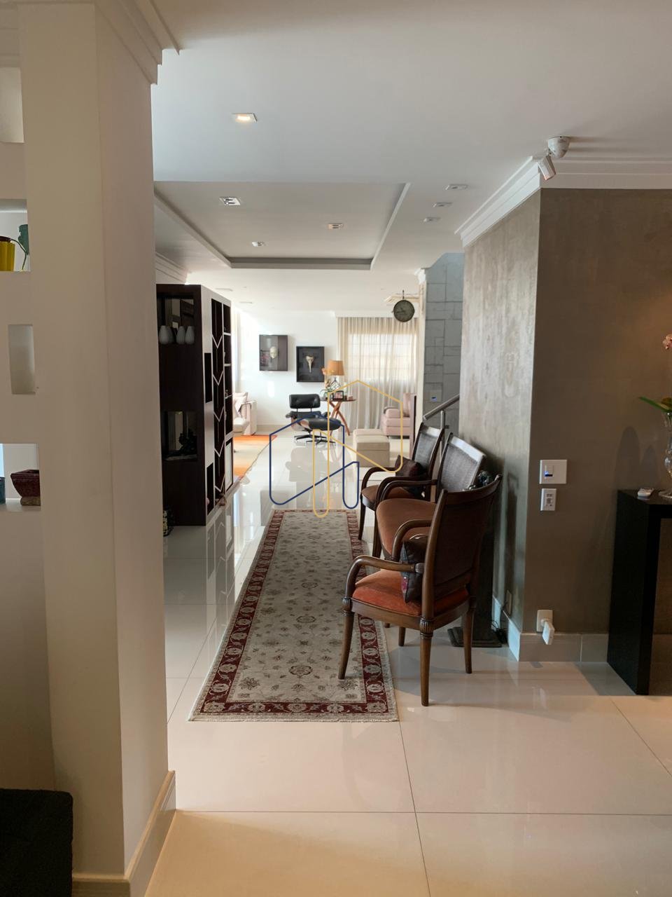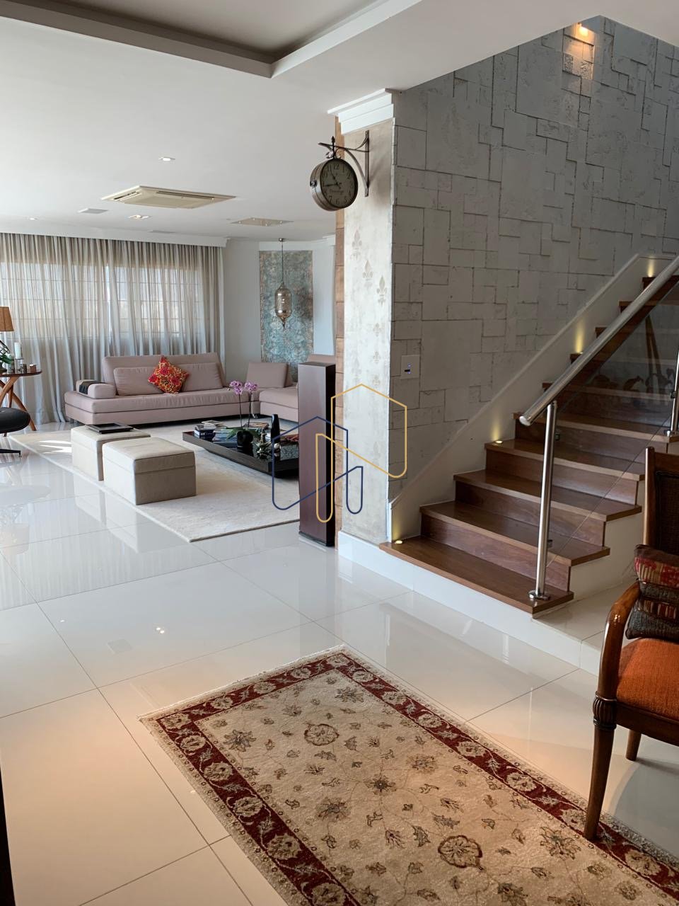 • Sala de Estar: Ambiente com pé-direito duplo de quase 6 metros, proporcionando uma sensação inigualável de amplitude e elegância.