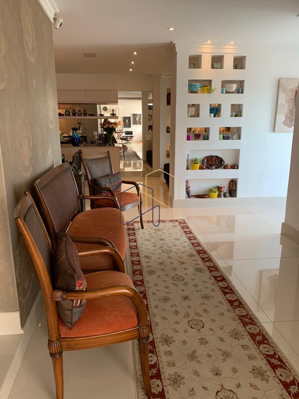 • Área Íntima: Quatro suítes espaçosas, todas equipadas com armários de alta qualidade. A suíte master destaca-se por um amplo closet e banheiros individuais para ele e para ela.