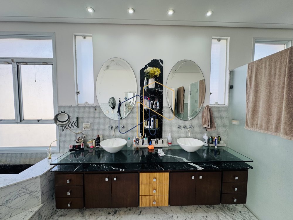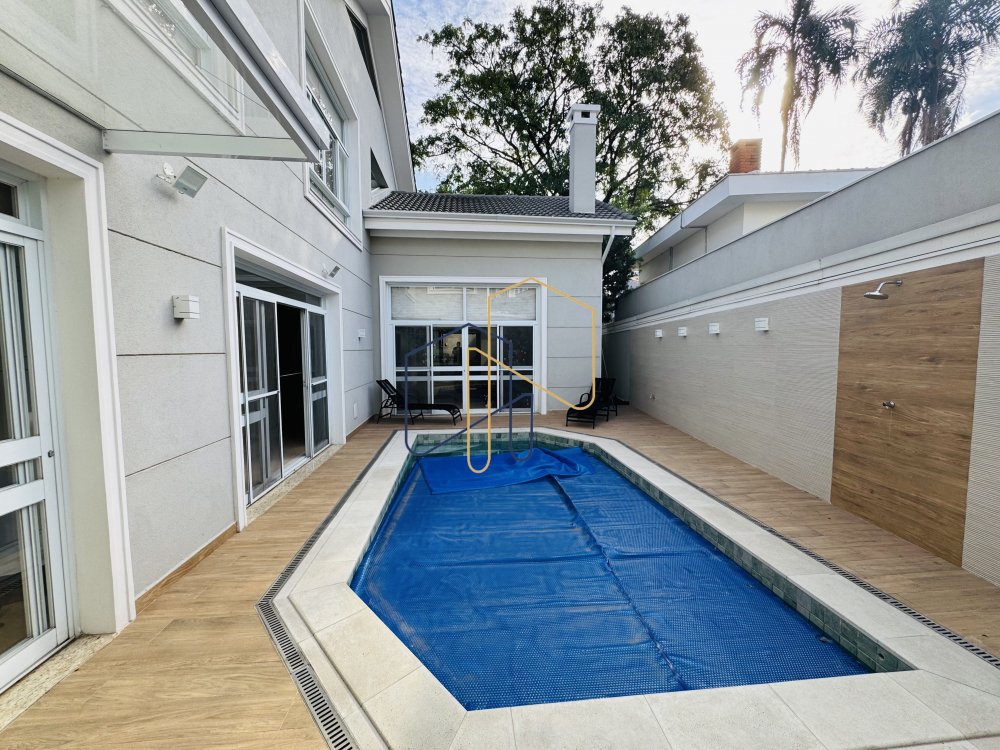 A área de lazer da casa é deslumbrante. Uma piscina de 24.000 litros, aquecida com trocador de calor elétrico, é o ponto central para momentos de diversão. Além disso, a residência possui academia privativa, espaço de descanso com redes, área gourmet e sauna úmida para até seis pessoas.