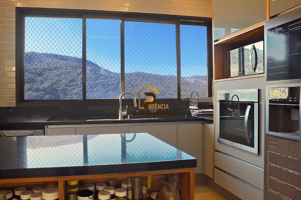 Cozinha completa com ilha e eletrodomésticos, espaço gourmet totalmente integrado com a área de lazer.