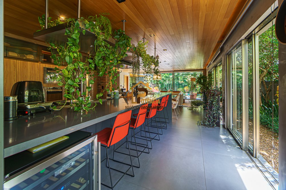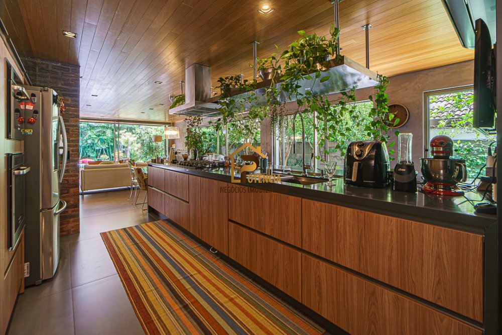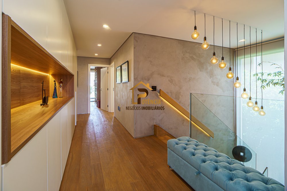 Linda casa mobiliada, sistema fotovoltaico (energia), toda marcenaria Kitchens, semi automatizada com acionamento por Alexa, amplos ambientes integrados, suítes avarandadas, 02 cozinhas completas e equipadas, lazer com espaço gourmet, sauna, área da piscina ensolarada rodeada de um lindo jardim.