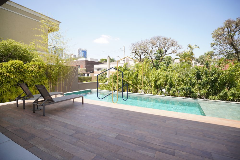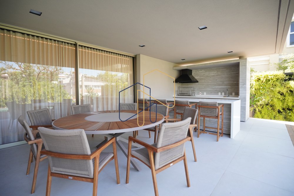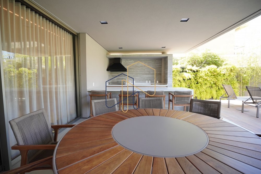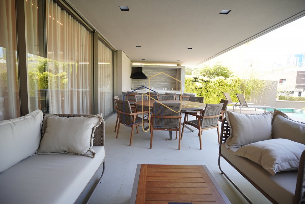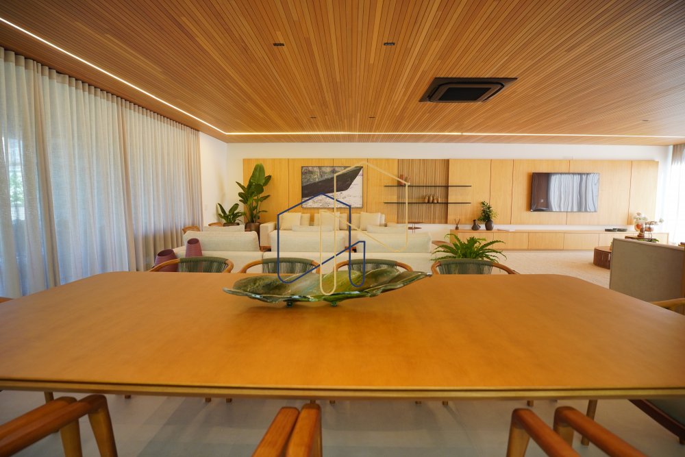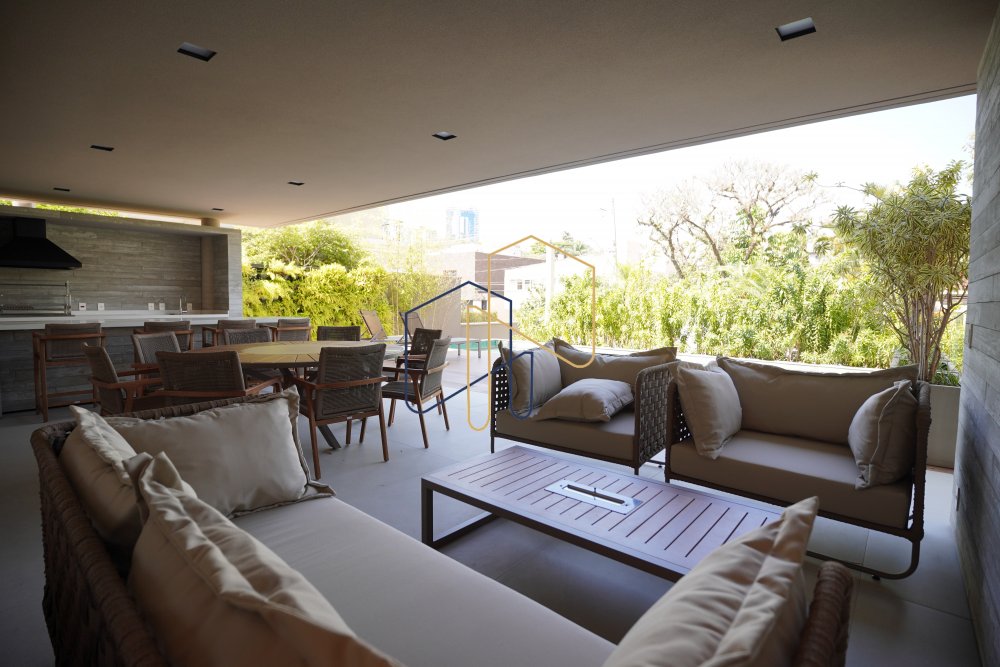 Living e jantar integrados com a área de lazer