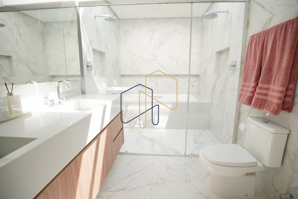 Banho Máster com 2 chuveiros e banheira de hidromassagem