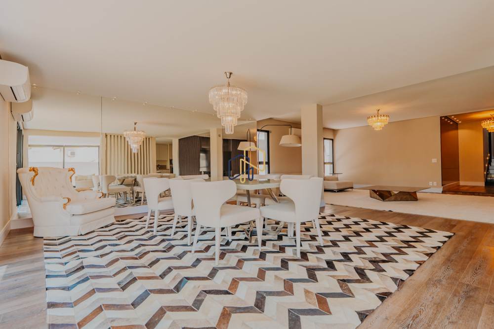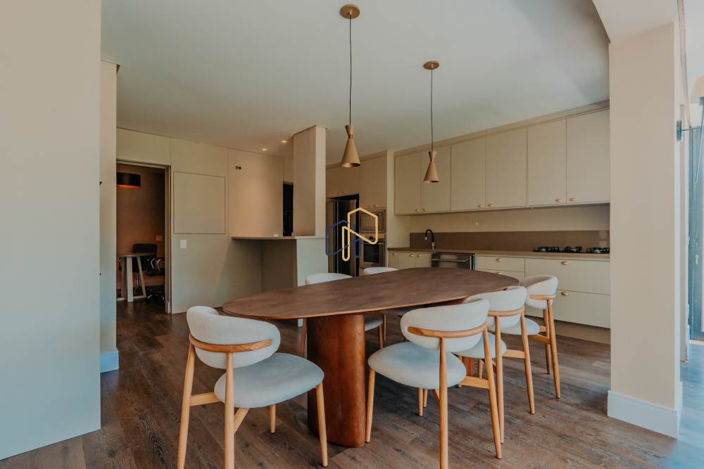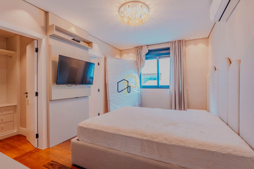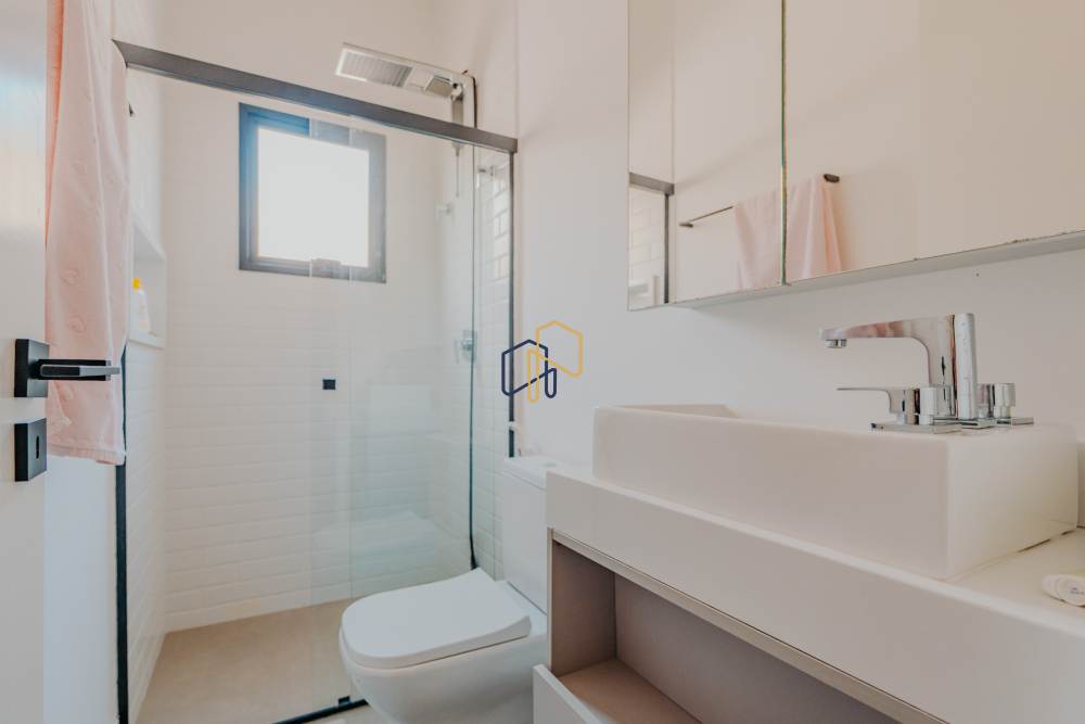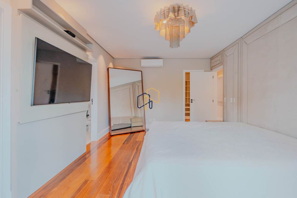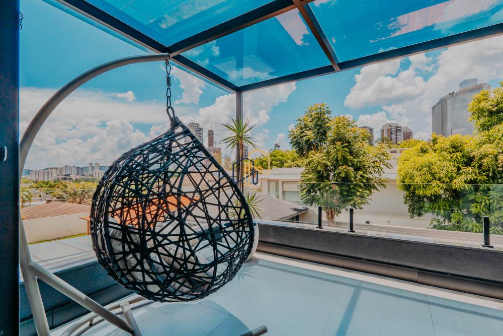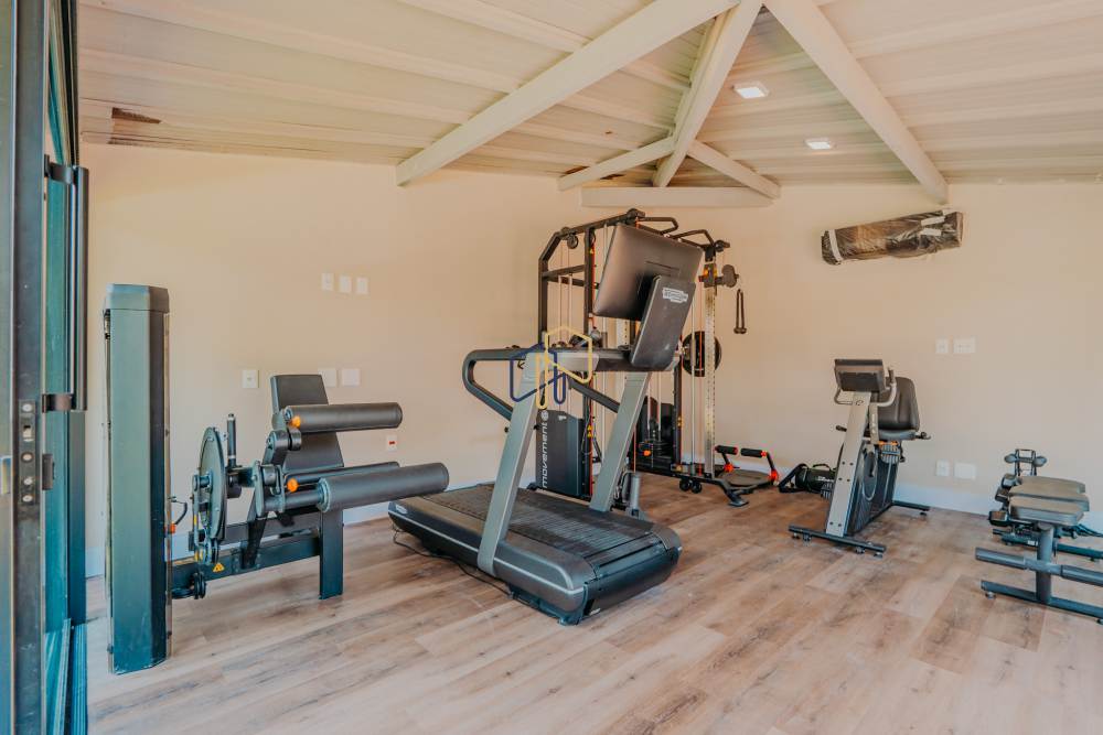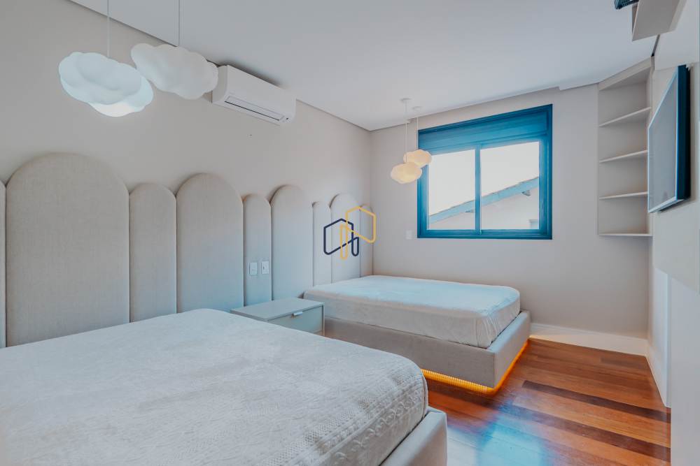 Todas esquadrias em alumínio, piso superior em madeira maciça, suítes repleta de armários e suíte master com terraço. Cozinha possui armários e despensa. Escritório com banheiro privativo no piso térreo e dependência de empregada. Lazer ensolarado integrado à piscina e espaço gourmet. Infraestrutura para energia fotovoltaica.