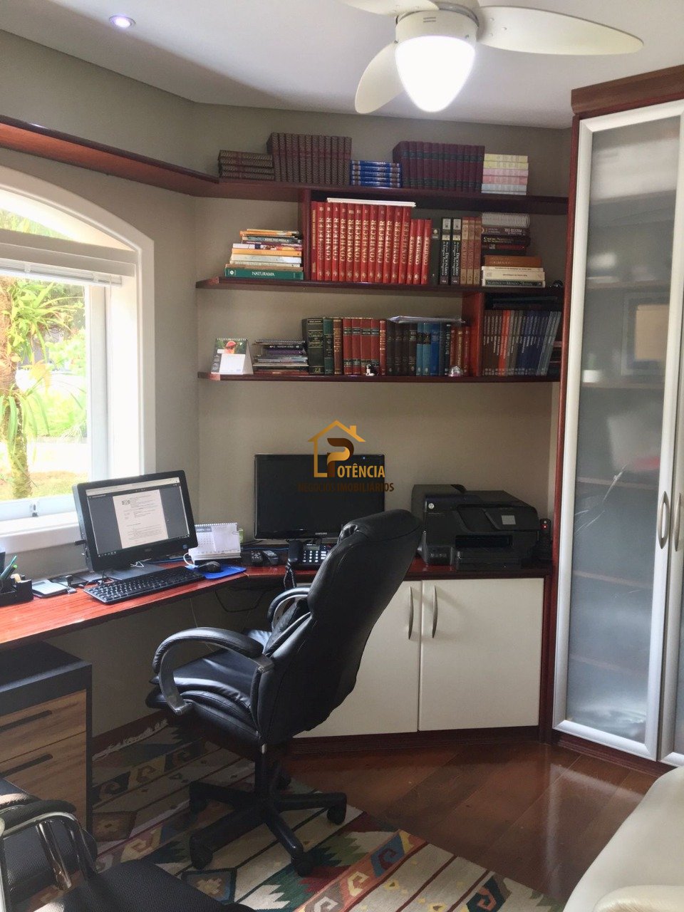 Living para 3 ambientes, home theater com projetor e escritório.