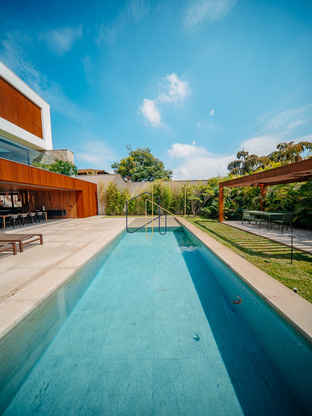 Essa moderna casa, situada em um condomínio fechado bem localizado em Alphaville e com completa estrutura de lazer, é um exemplo excepcional da fusão entre a arquitetura contemporânea de Guilherme Torres e o paisagismo de Gilberto Elkis. Com um terreno de 682m² e 615,32m² de área construída, o projeto prioriza não apenas a estética, mas também a funcionalidade, o conforto e a sustentabilidade. Todos os ambientes são abundantemente iluminados pela luz natural, promovendo uma conexão harmoniosa com a natureza, que se estende tanto para o exterior quanto para o interior, utilizando elementos naturais como pedra e madeira. A deslumbrante piscina com prainha de 35m² se integra a uma área externa de 232m², criando um espaço ideal para desconectar-se e relaxar. A casa também conta com quatro amplas suítes, um escritório e um living integrado que une os ambientes de estar e jantar, oferecendo um lar acolhedor e sofisticado para seus moradore