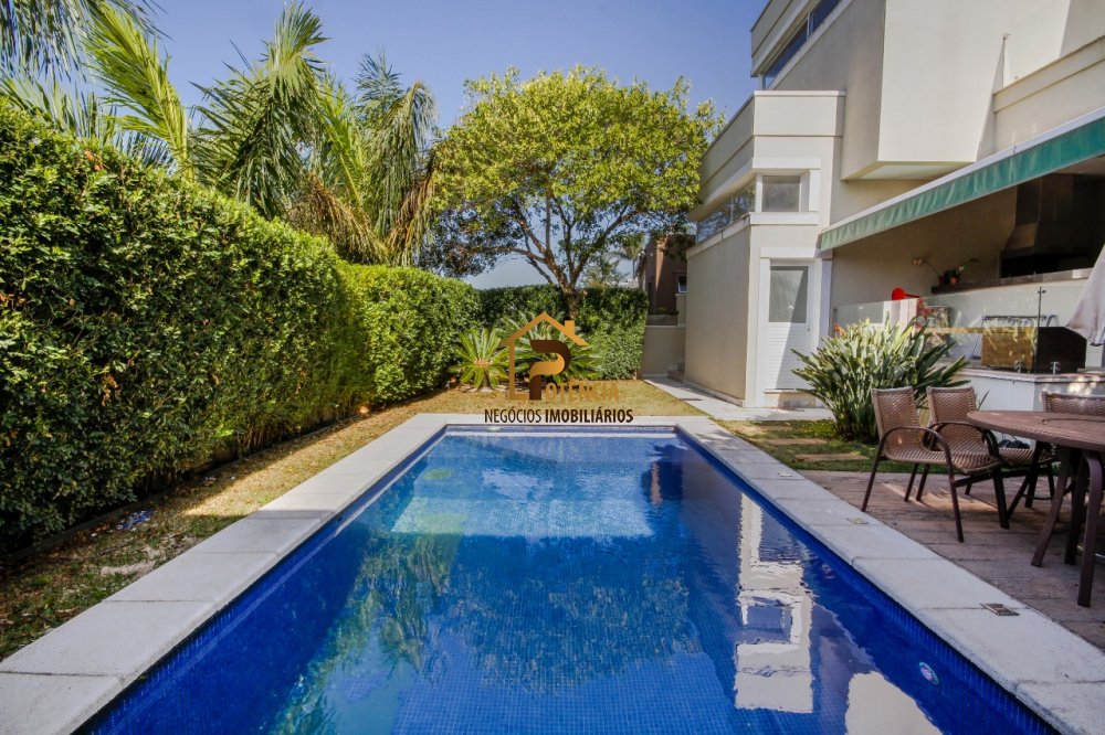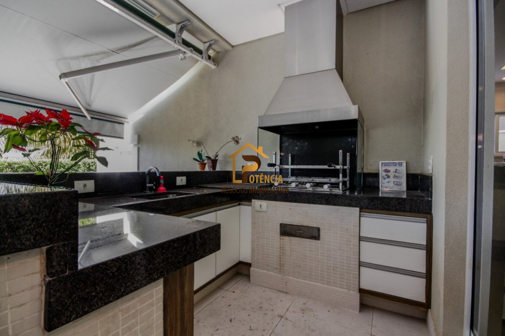 Espaço gourmet com churrasqueira e piscina.