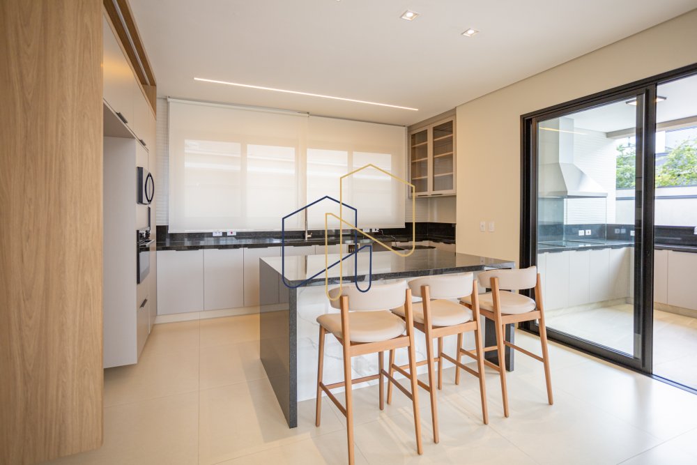A sala de estar, com pé direito duplo, é um convite ao convívio e à descontração. Ao lado, um escritório bem iluminado e uma cozinha moderna com ilha, ideal para quem aprecia cozinhar. A área gourmet e a piscina são perfeitas para receber amigos e familiares, complementadas por uma churrasqueira que torna qualquer reunião ainda mais especial.