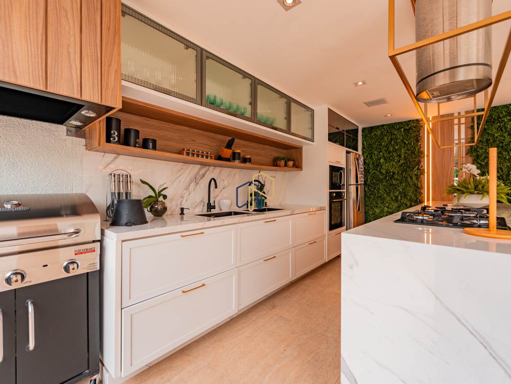 Ambientes amplos, muito claros e integrados. A casa conta com uma área gourmet completa, repleta de armários, linda!