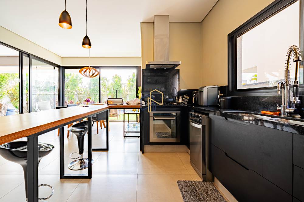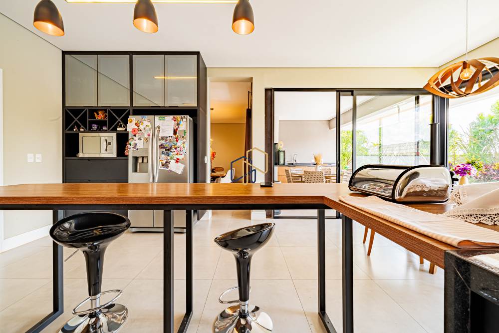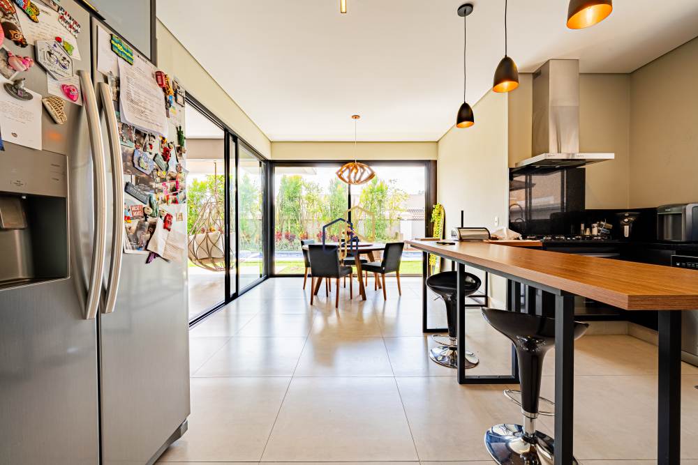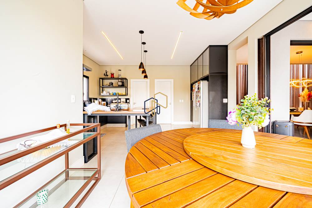 Sala de jantar integrada com espaço gourmet e sala de almoço;