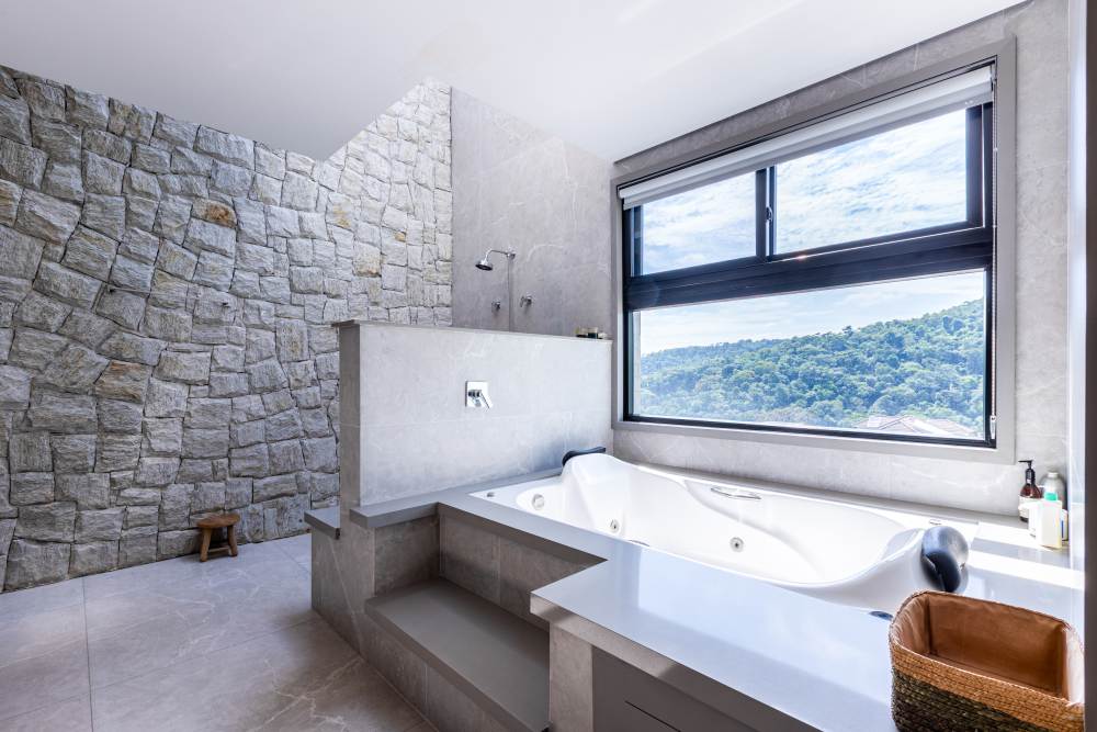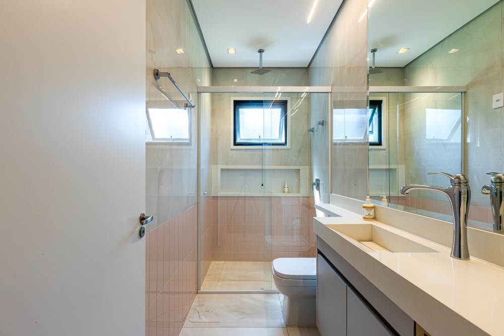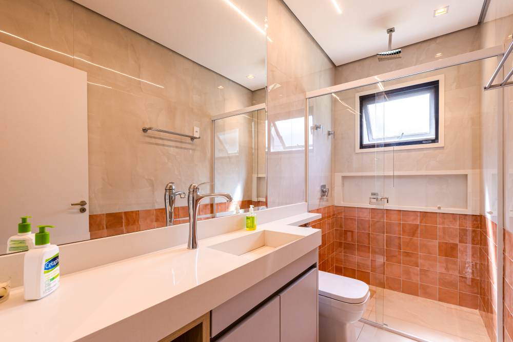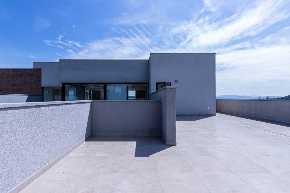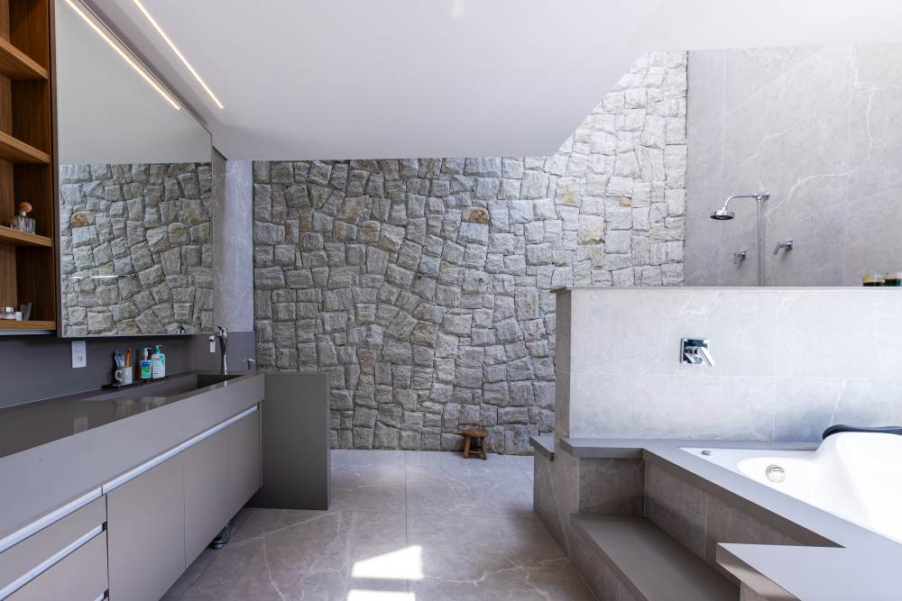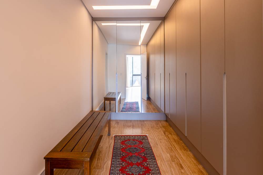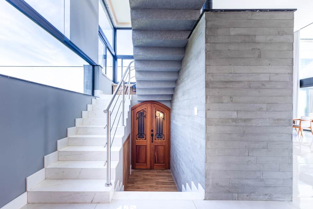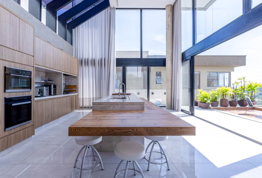 Para total conveniência, a casa conta com infraestrutura de automação, energia fotovoltaica que cobre 90% do consumo, aquecimento solar, elevador para quatro pessoas e ar-condicionado em todos os ambientes. As persianas elétricas garantem praticidade e conforto térmico.