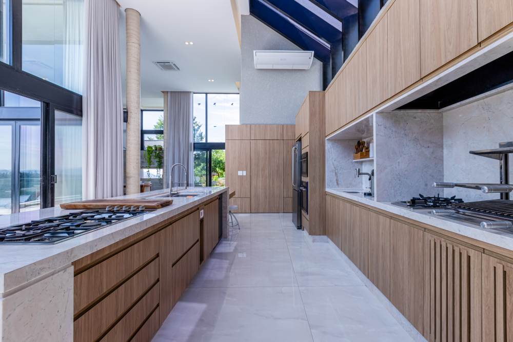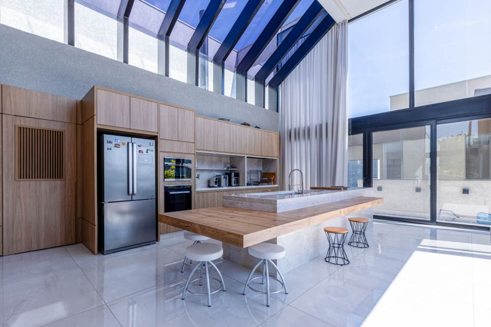 A cozinha e área gourmet são um convite para momentos de convívio e celebração, equipadas com ilha central, churrasqueira e eletrodomésticos de alto padrão. Para os amantes de vinhos, uma adega italiana complementa a experiência.