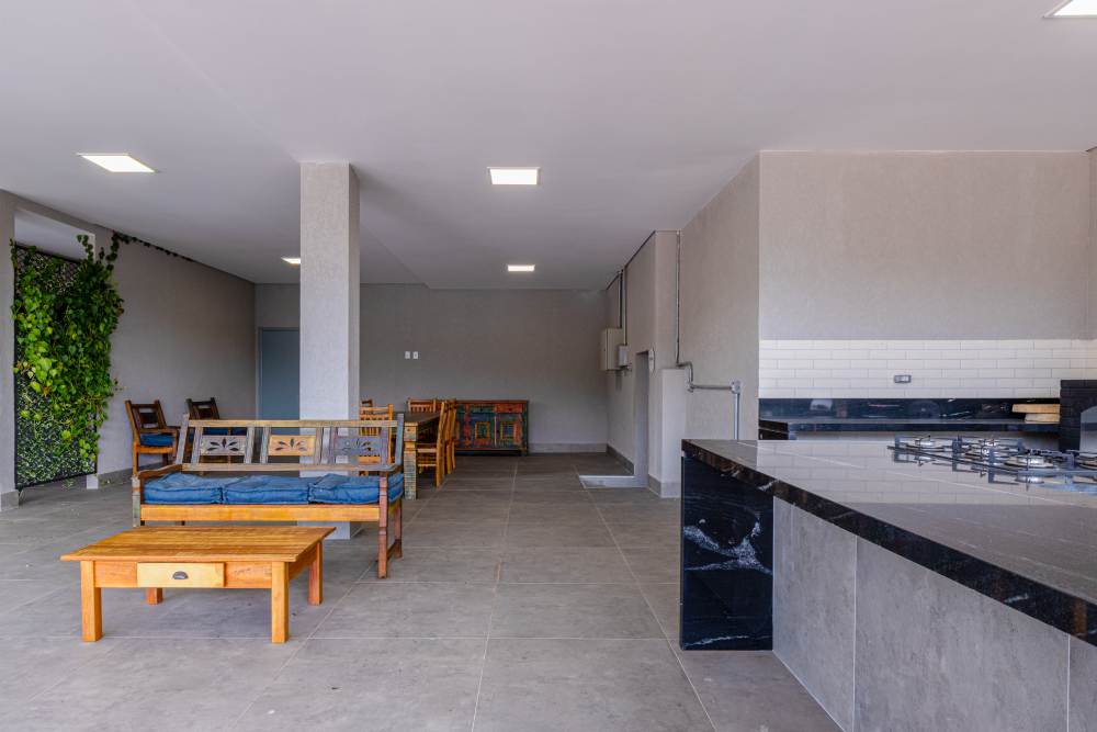 A área de lazer foi projetada para oferecer o máximo de conforto e diversão, com uma piscina aquecida de borda infinita e prainha, um salão de festas com forno de pizza e churrasqueira, além de um pomar exuberante com mais de 35 árvores frutíferas.