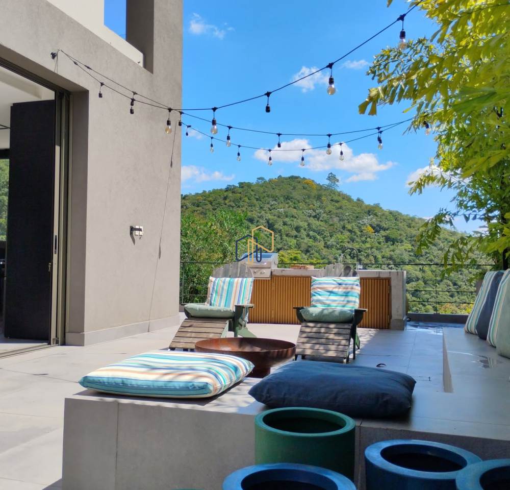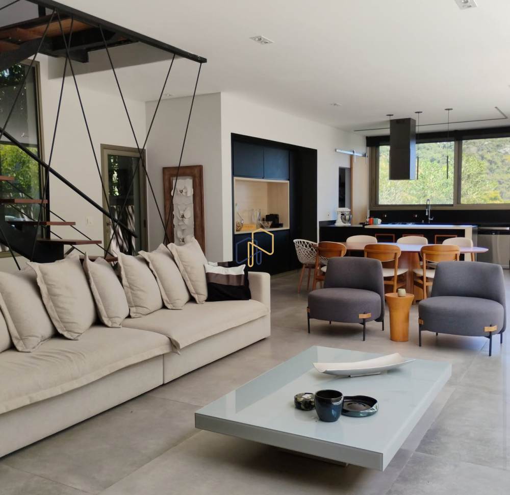 Casa nova, moderna, com acabamento de alto padrão e um projeto que privilegia a integração com a natureza e o conforto. São 490m² de terreno e 400m² de área construída, com uma vista deslumbrante e definitiva para a mata.