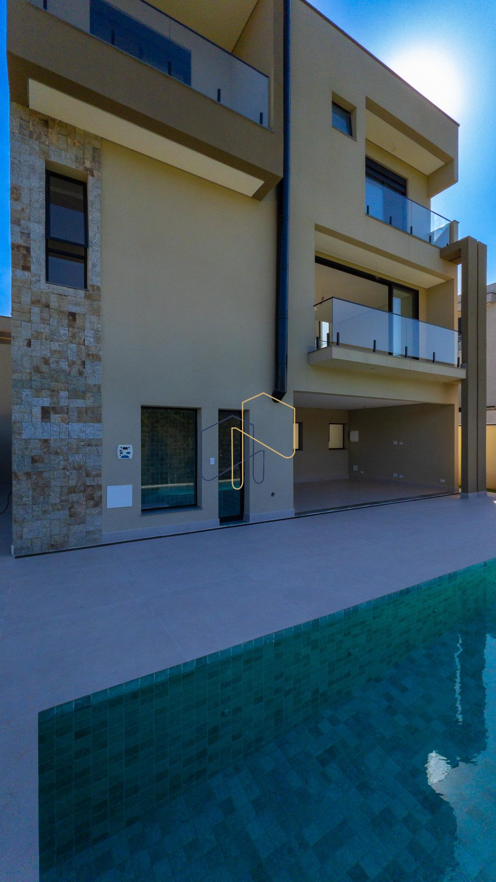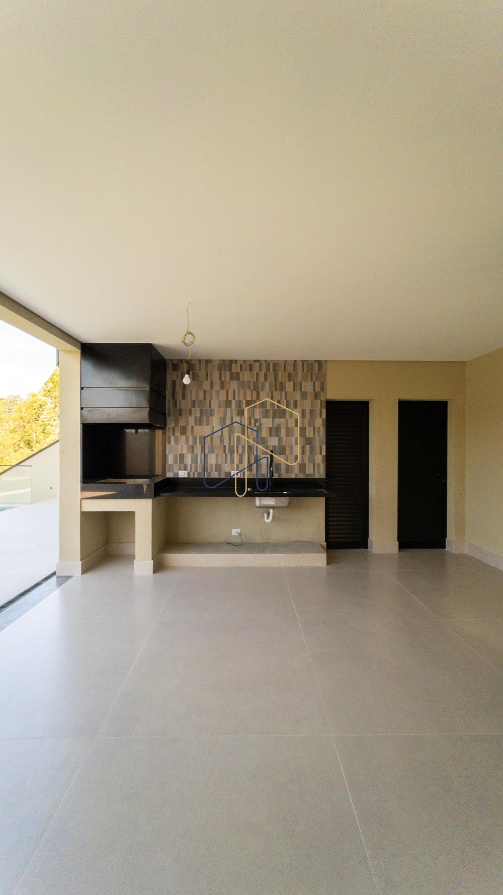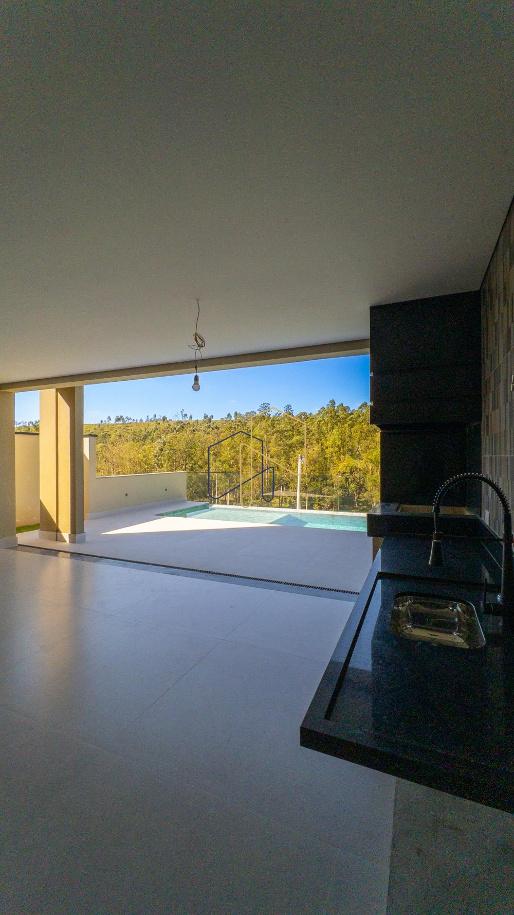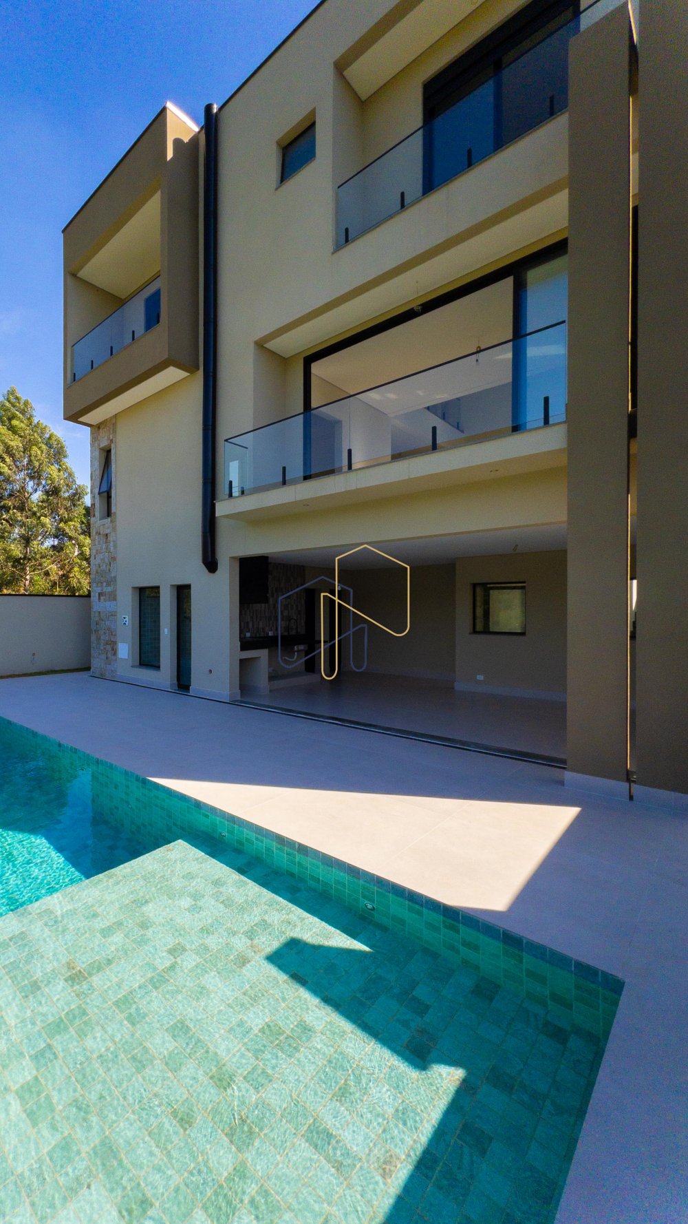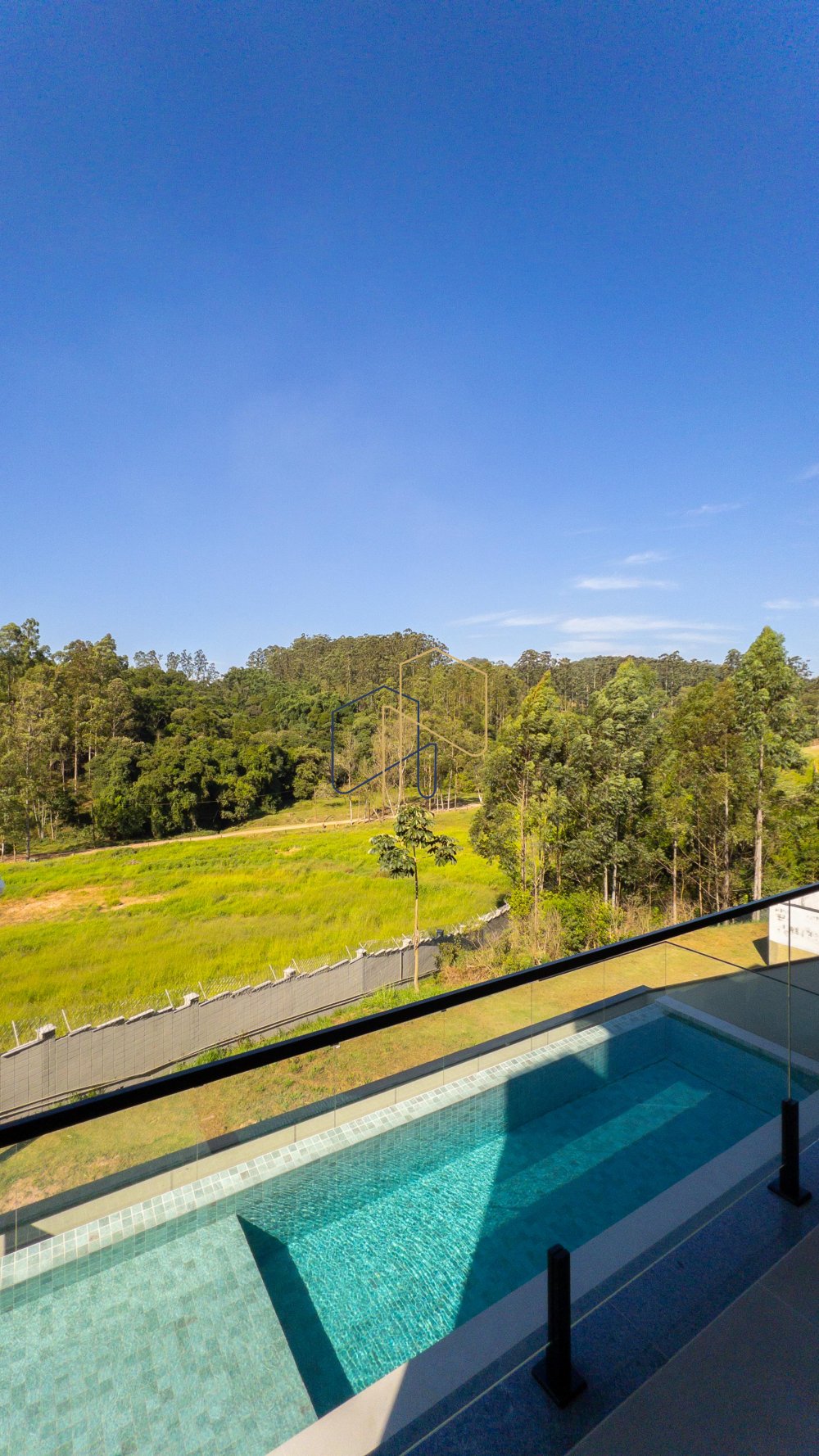 Casa nova com fundo para mata. Living amplo com pé direito elevado e lareira. Piso superior com 4 Suítes, sendo suíte master com closet e linda vista. Todas suítes com persianas autorizadas e infra para ar condicionado. Piso inferior possui 1 suite completa para hóspedes.