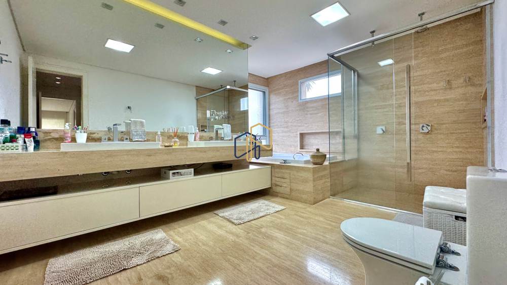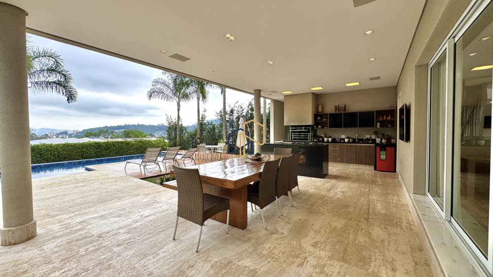 Com 4 suítes maravilhosas, um total de 7 banheiros, e área total de 600m² para você desfrutar, essa casa conta com total infraestrutura: aquecimento solar, banheira, churrasqueira, cinema, energia solar, espaço gourmet, lareira e uma piscina incrível!