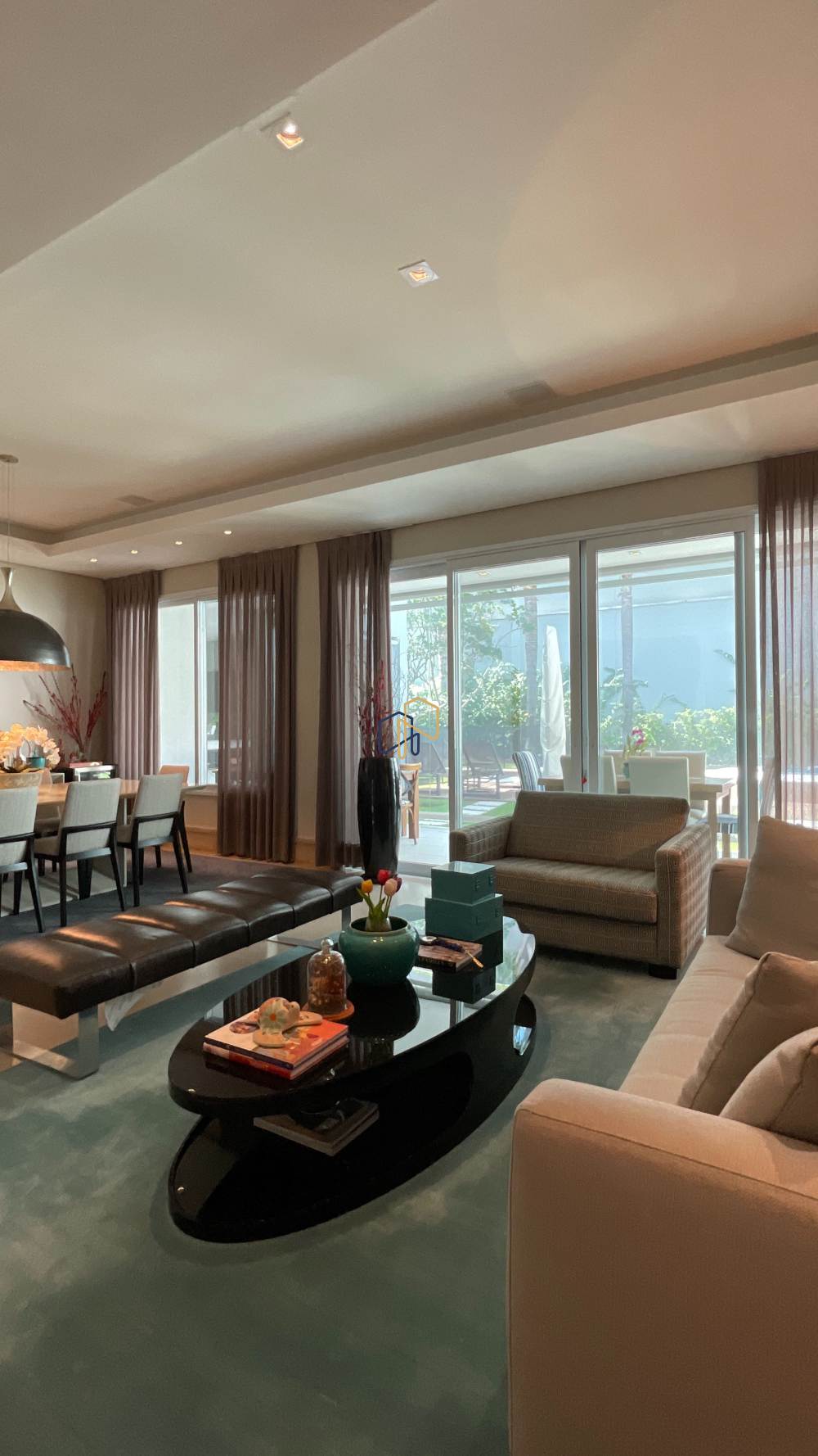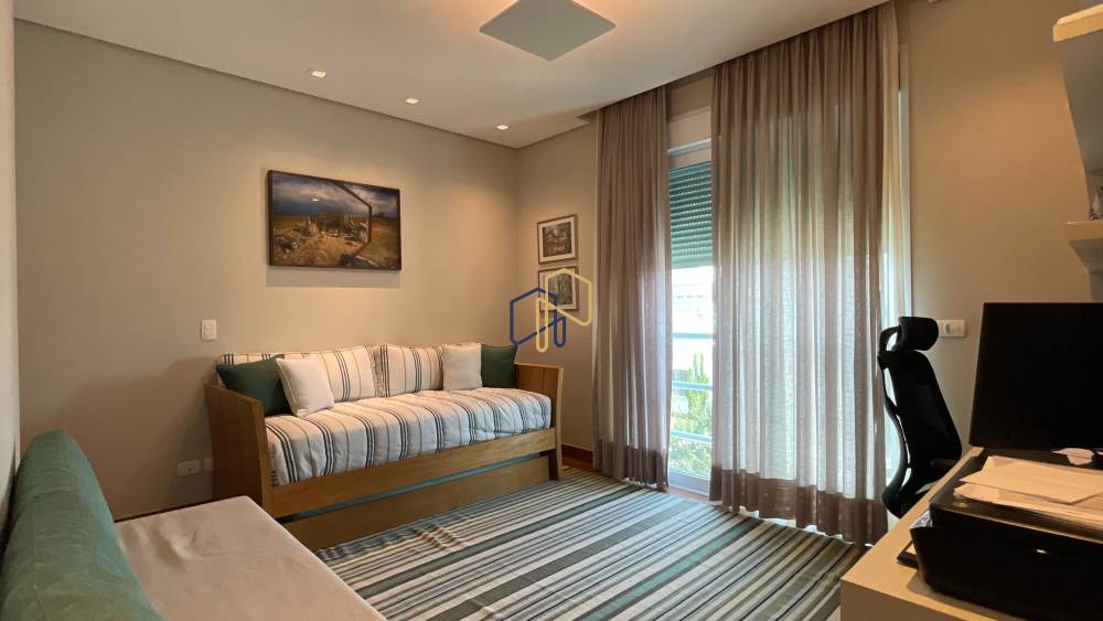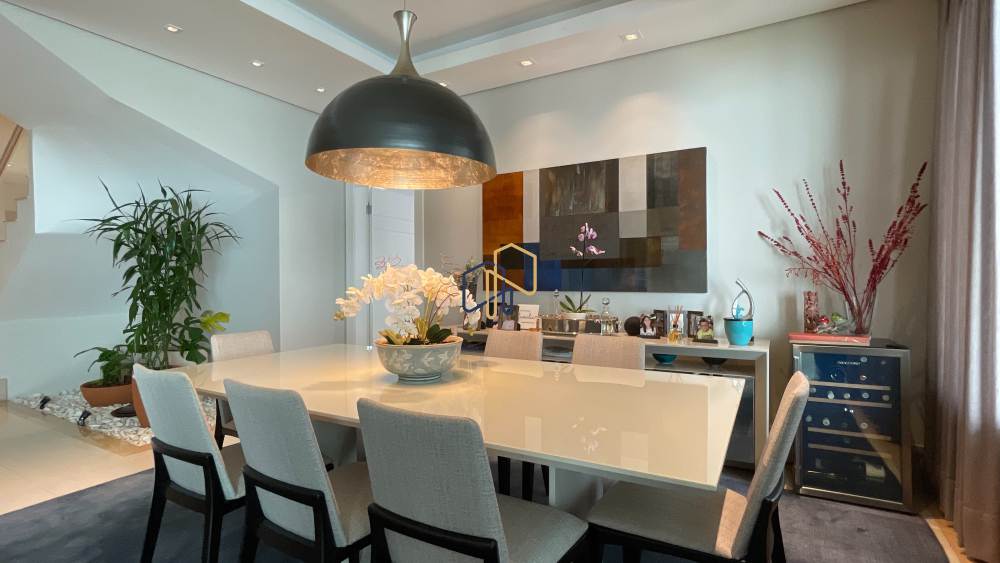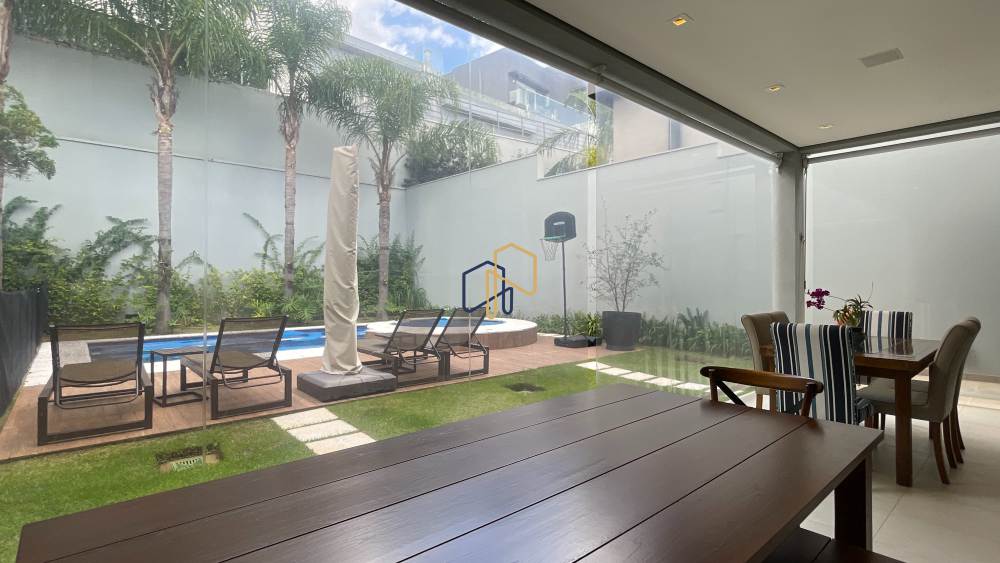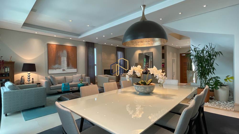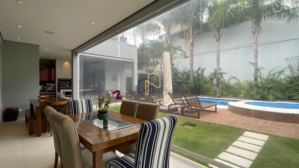 São 4 suítes espaçosas, 4 vagas de garagem, sala ampla com diversos ambientes, cozinha repleta de armários planejados, além de um espaço gourmet perfeito para receber. A área de lazer é um dos grandes destaques, com piscina, espaço gramado e muita privacidade.