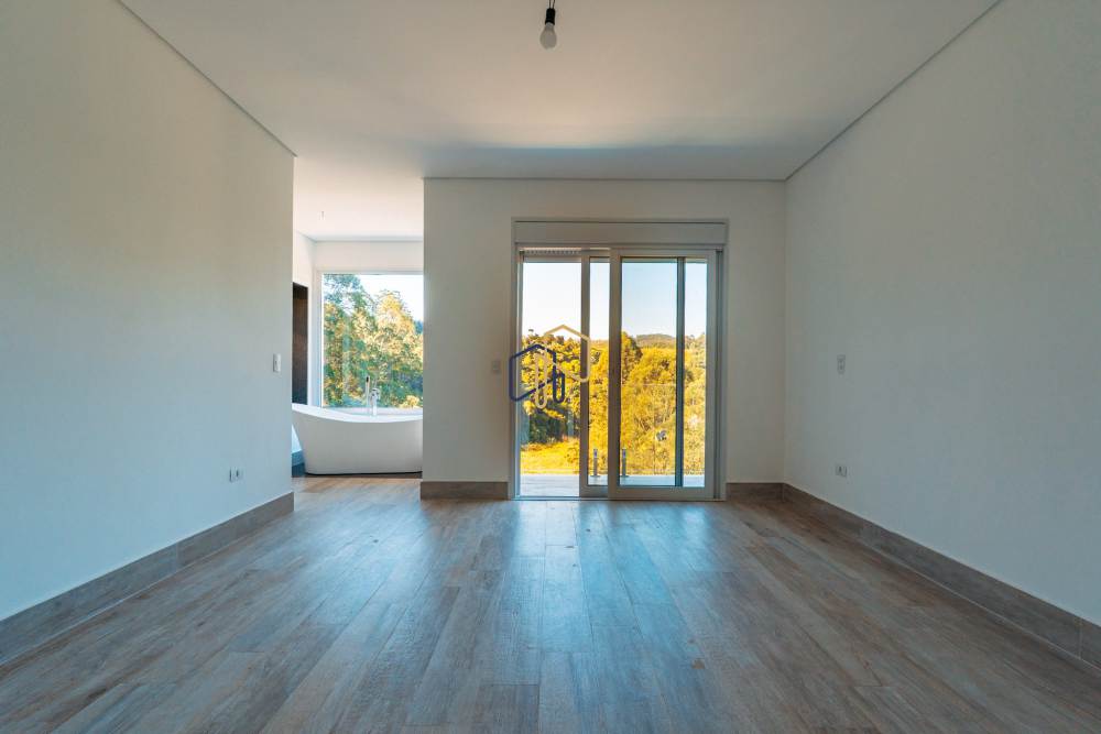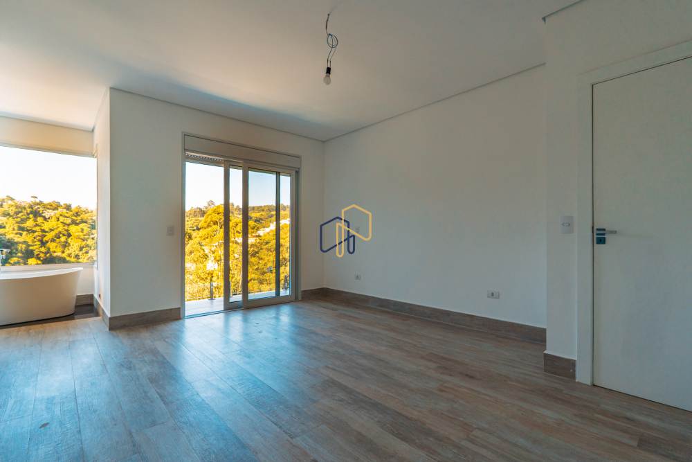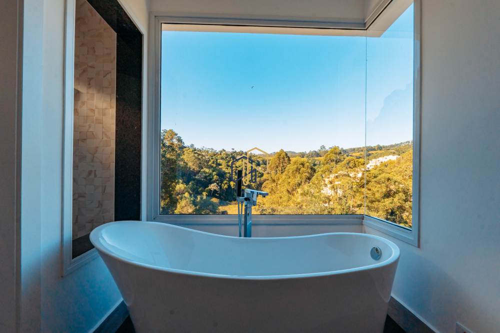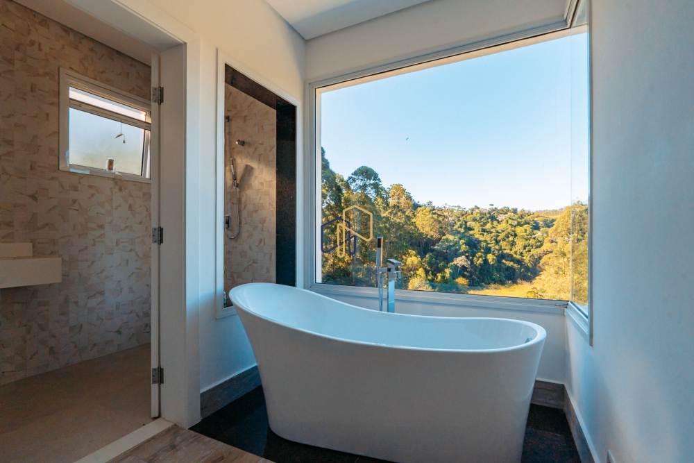 Suíte master com closet, banheira com vista permanente e porta balcão automatizada