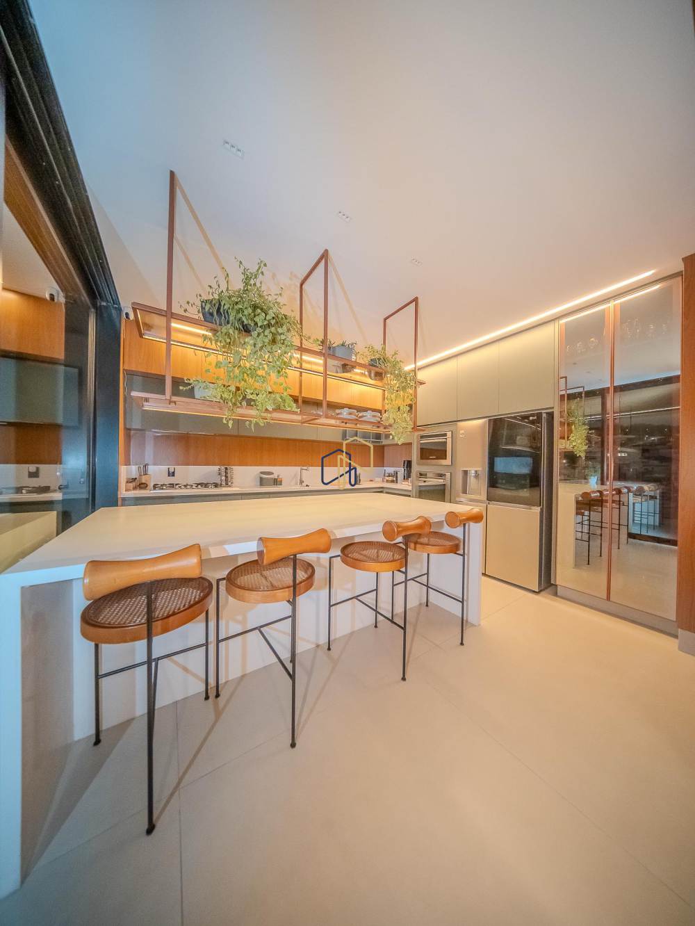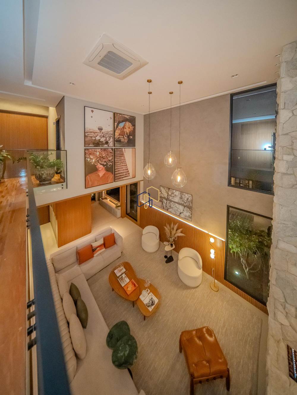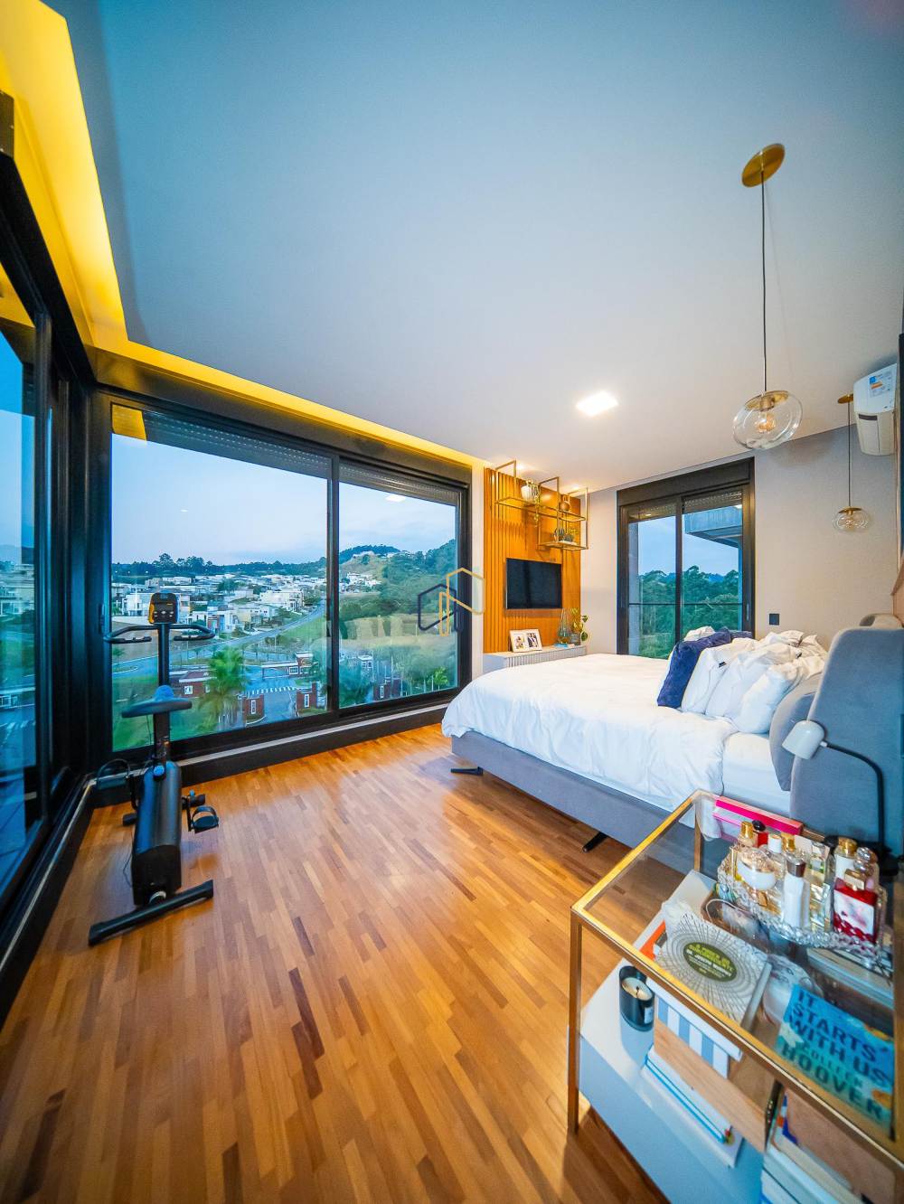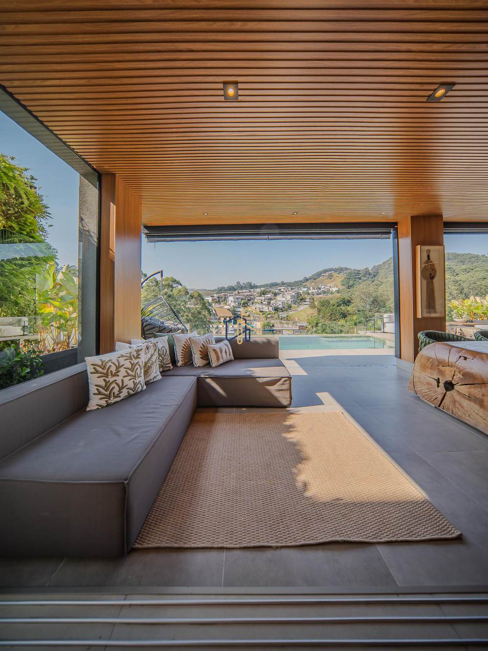 Além disso, você poderá desfrutar de um living com pé direito duplo, escritório ou brinquedoteca, adega climatizada revestida em pedra moledo , home theater, sala de estar com lareira a gás revestida em pedra moledo, sala de almoço integrada com a cozinha americana e um terraço gourmet com churrasqueira a gás e vista incrível