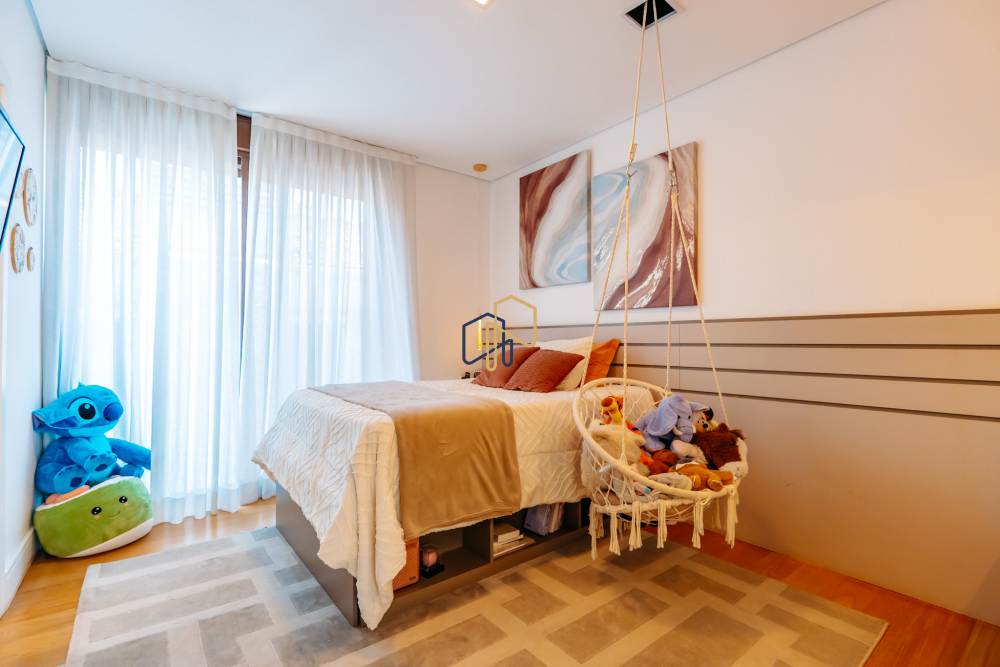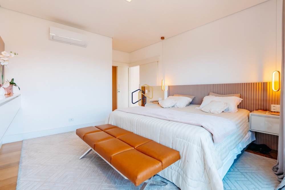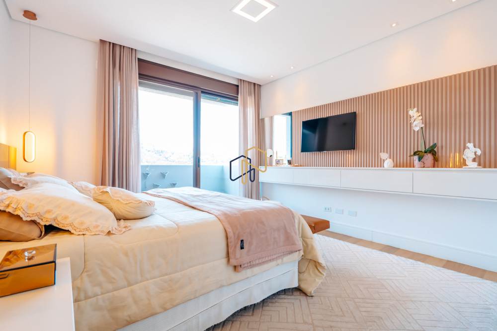 São 4 dormitórios, sendo 3 suítes com closet e uma suíte master com jacuzzi e vista definitiva para a Reserva.