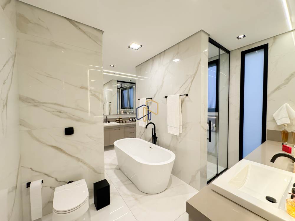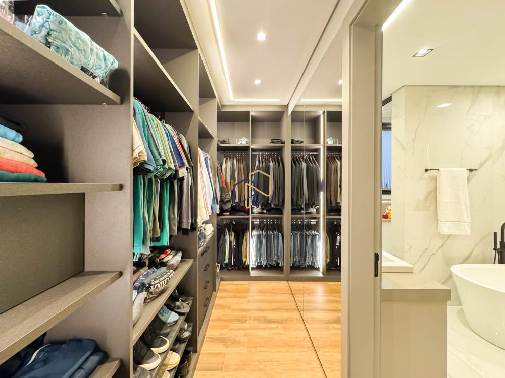 • Suíte master com closets Sr. e Sra., banheiro com banheira e divisão interna