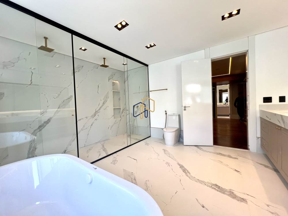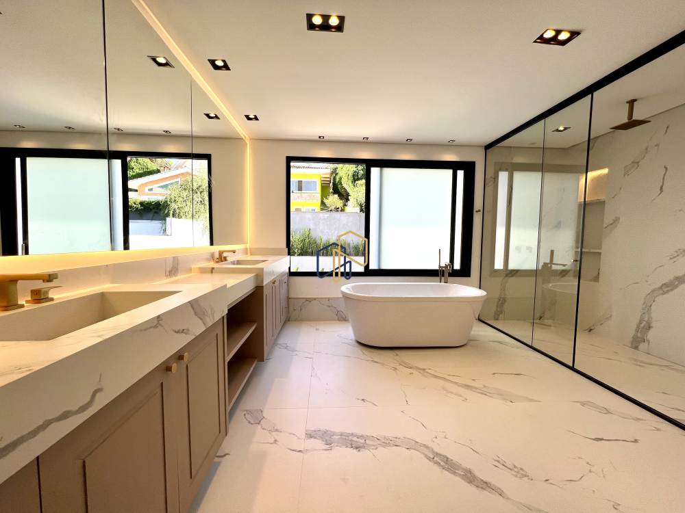 5 suítes, possibilidade de 1 suíte no térreo, closets; suíte máster com banheiros senhor e senhora;