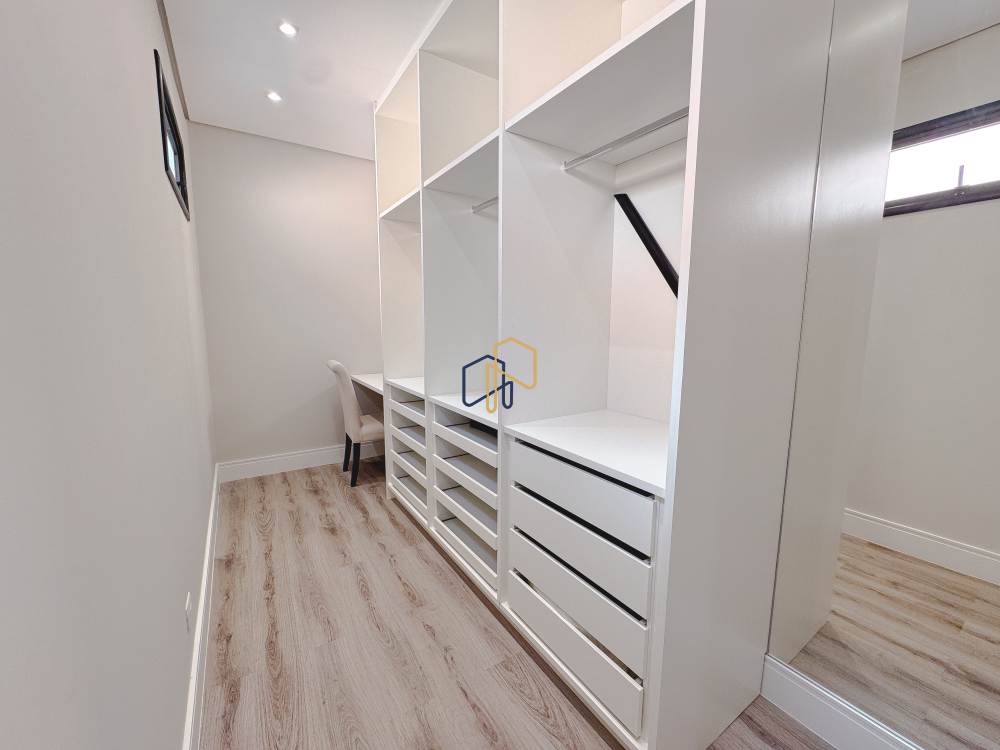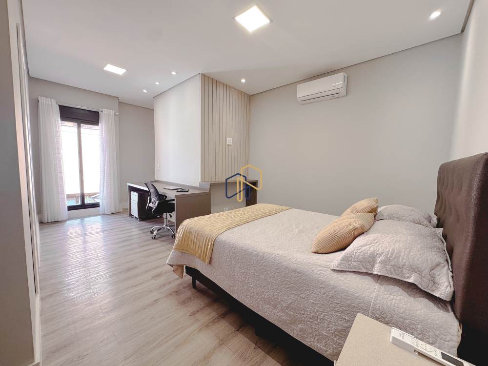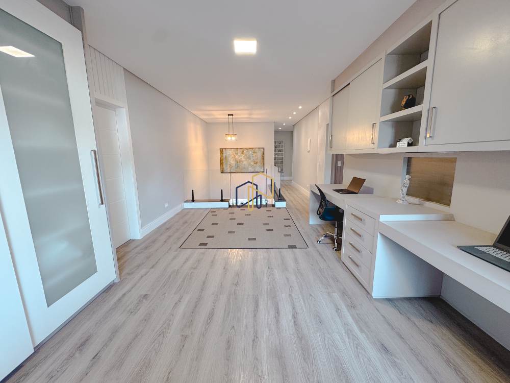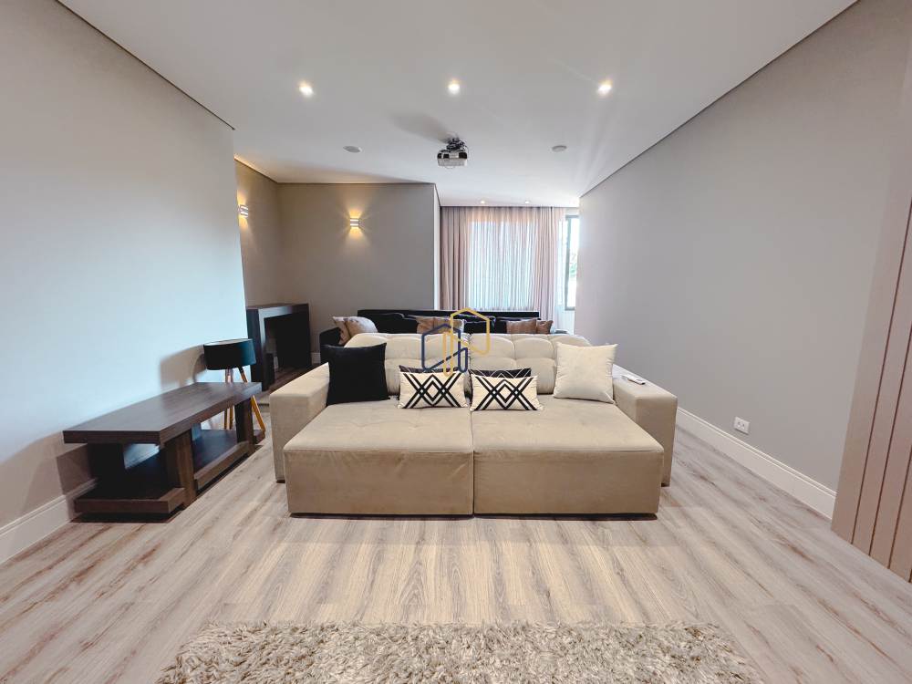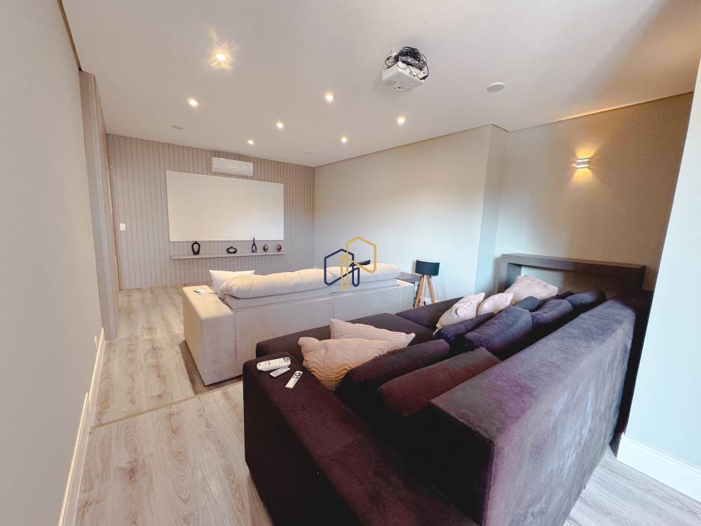 Piso superior: 4 suítes, 1 copa, home theater, sala de estar.