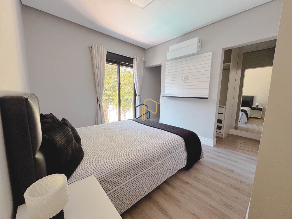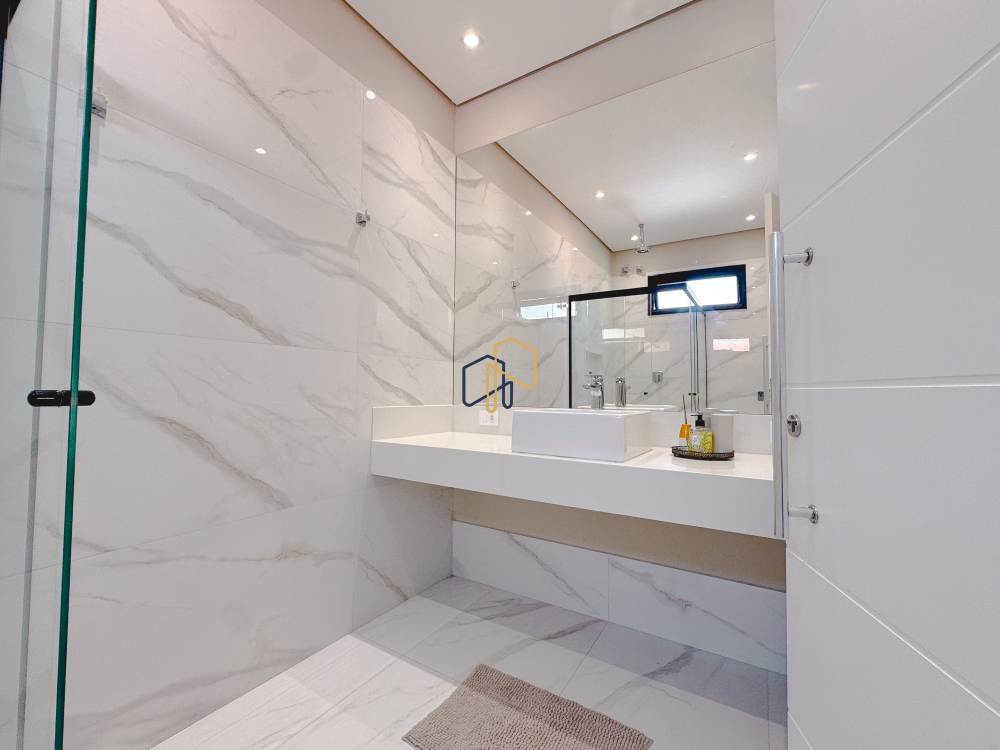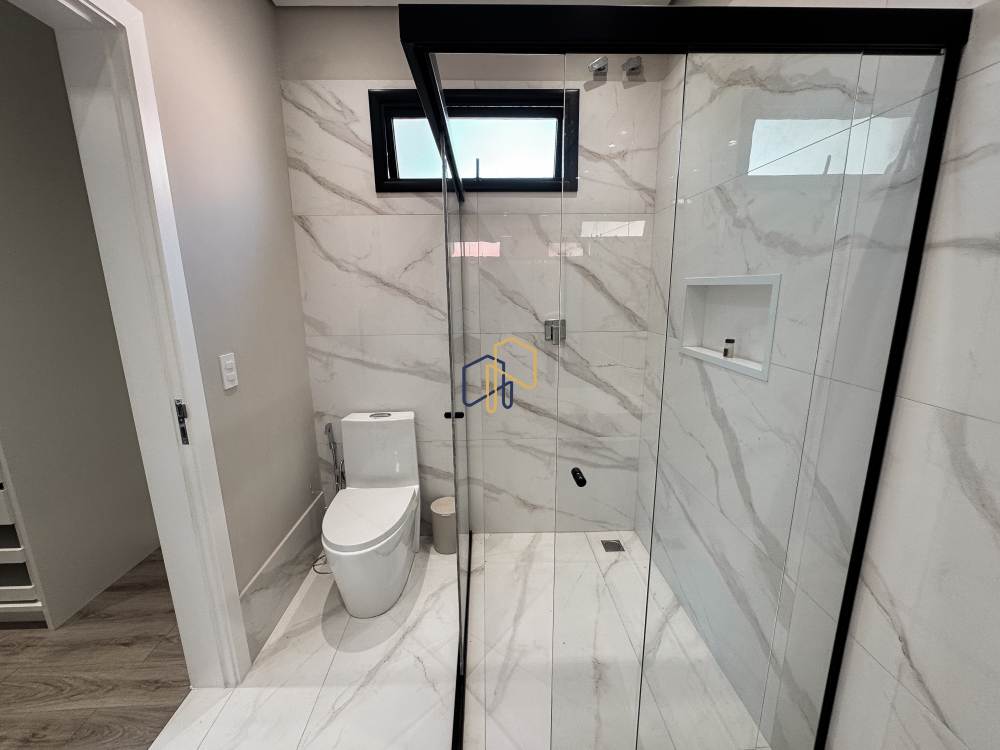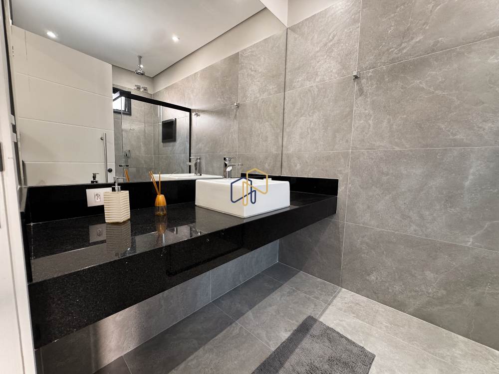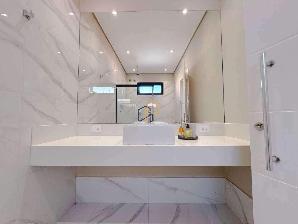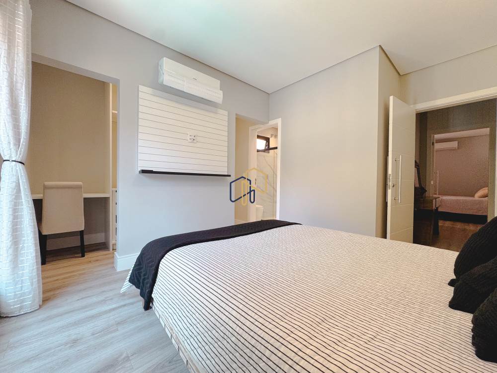 Piso superior: 4 suítes, 1 copa, home theater, sala de estar.