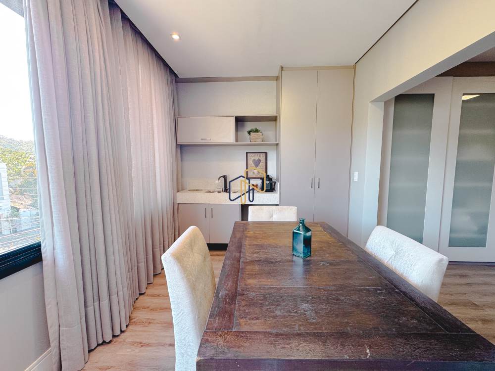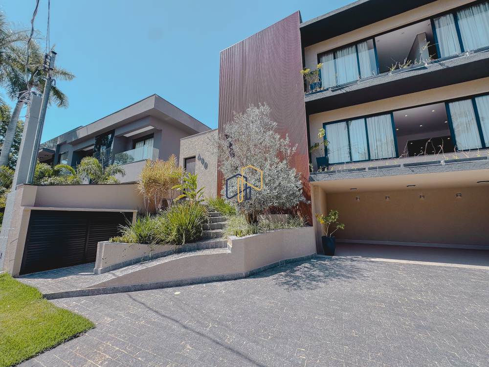 Piso térreo: 1 suíte, 4 salas, lavabo, despensa, sala de jantar, sala do vinho, churrasqueira interna, cozinha integrada com sala de almoço.