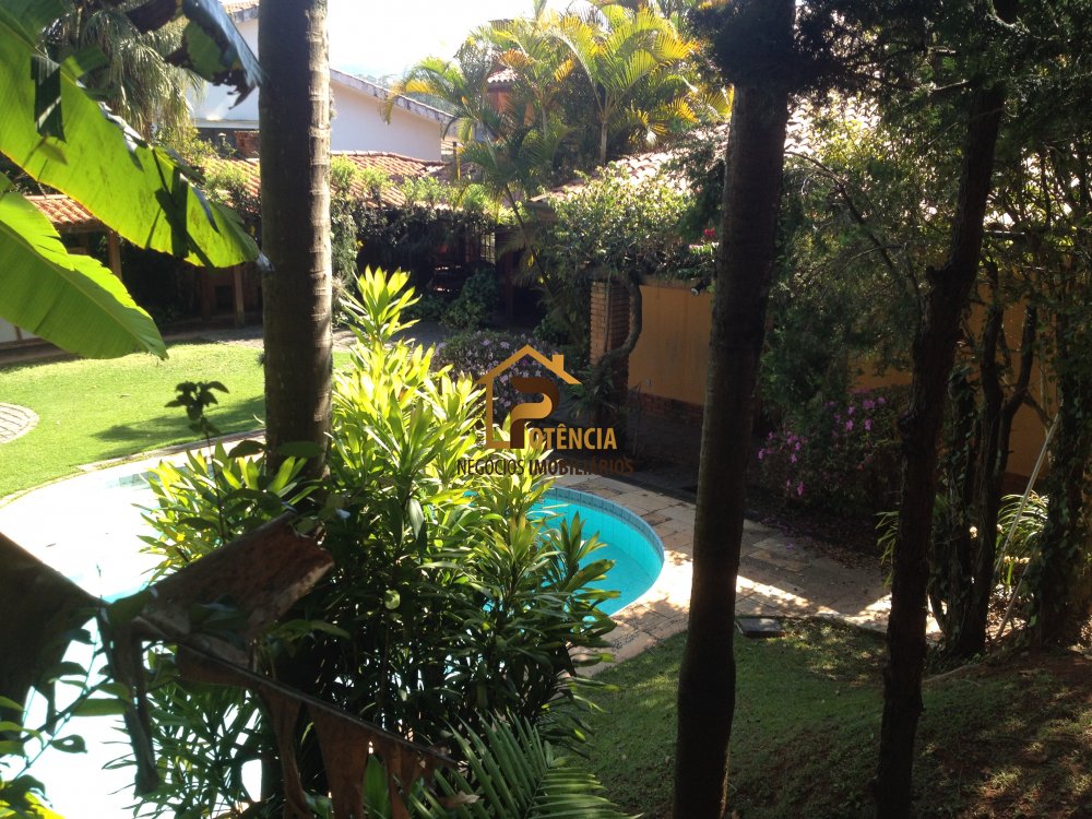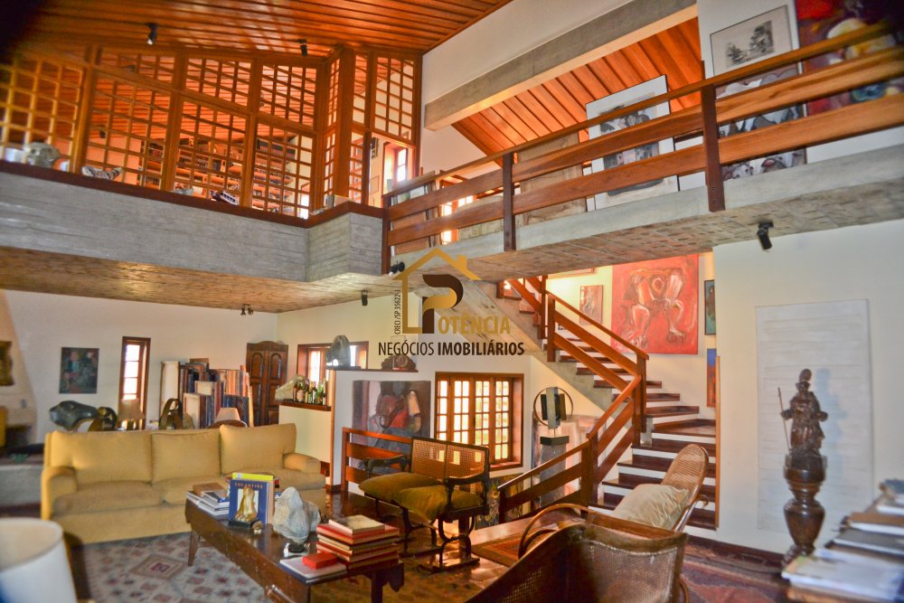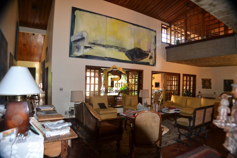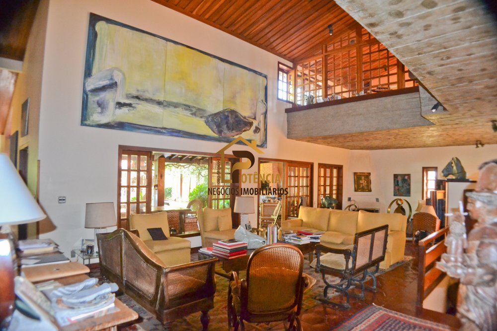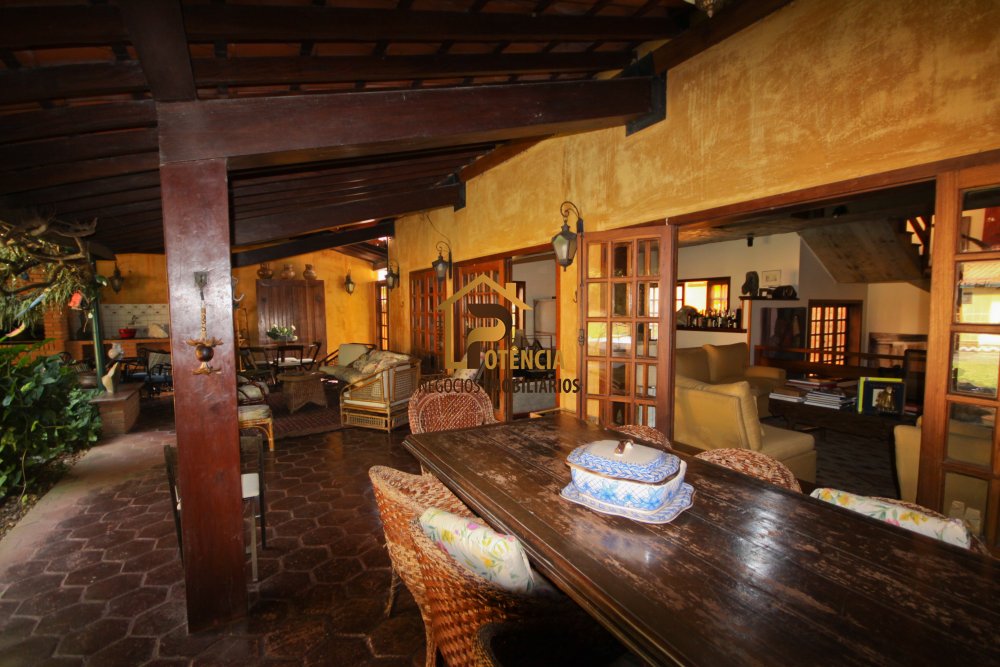 Casa com 5 suítes, mobiliada em estilo rustico, living para vários ambientes, escritório, sala de jantar, área externa com piscina, sauna seca e muito verde.
