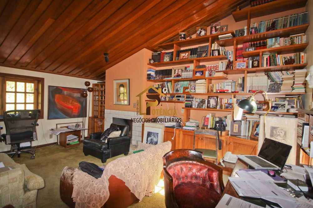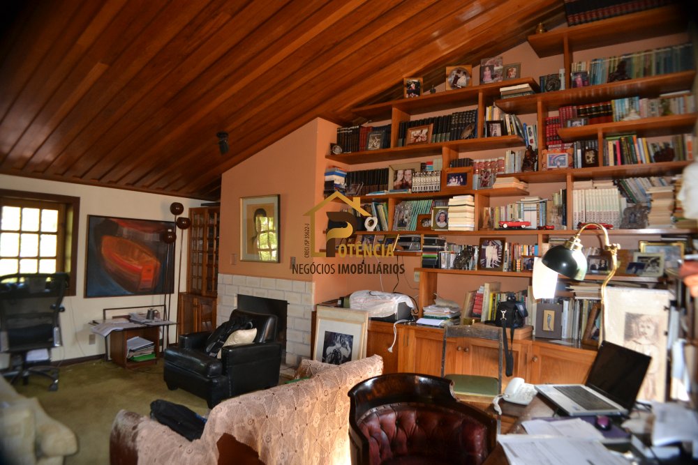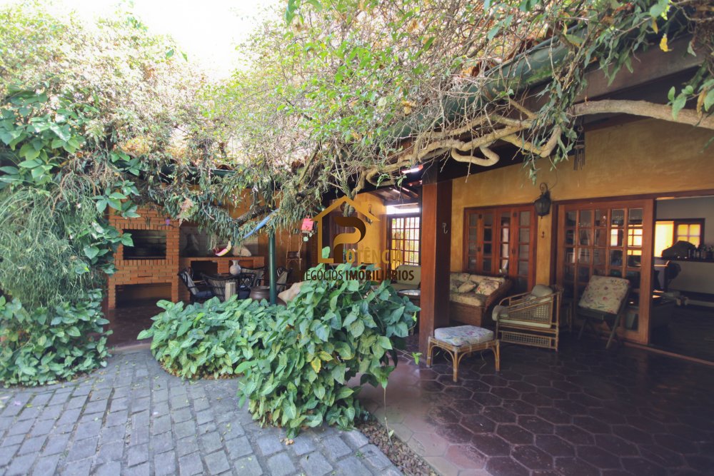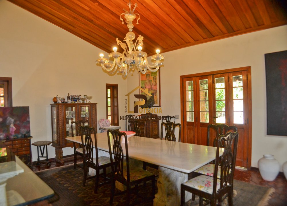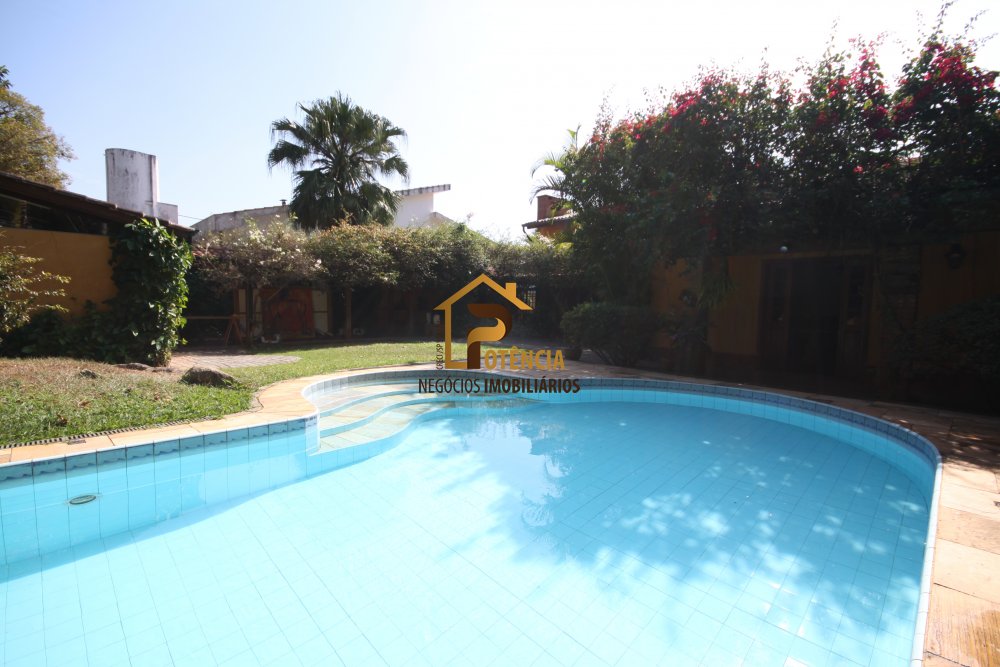 Casa com 5 suítes, mobiliada em estilo rustico, living para vários ambientes, escritório, sala de jantar, área externa com piscina, sauna seca e muito verde.