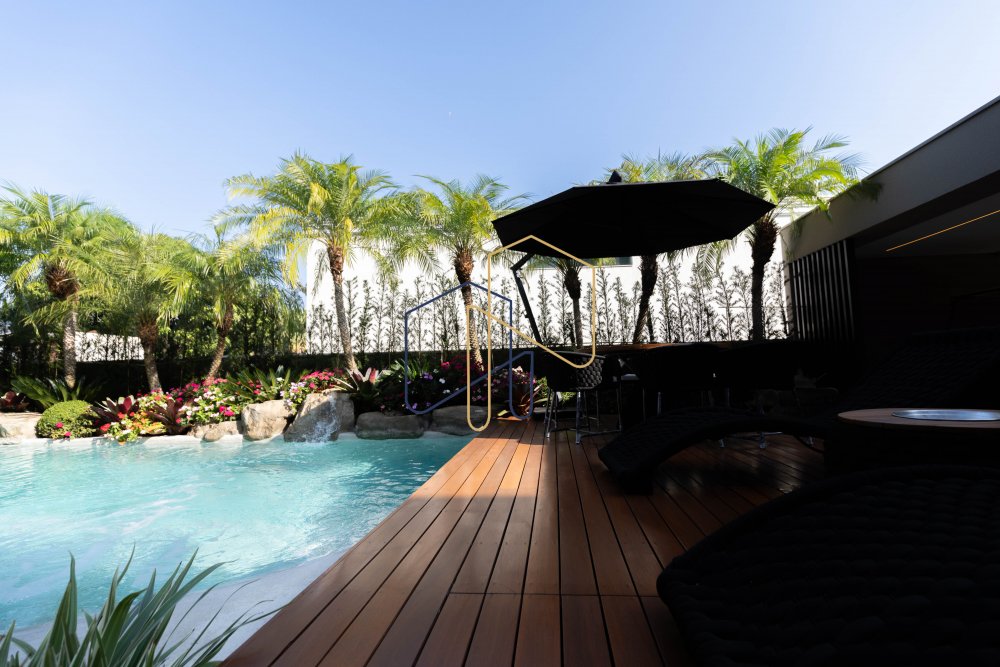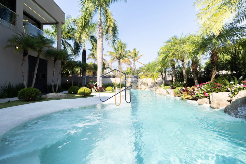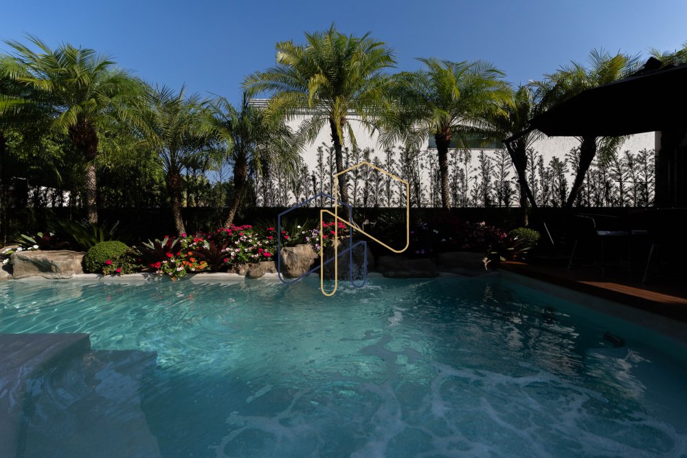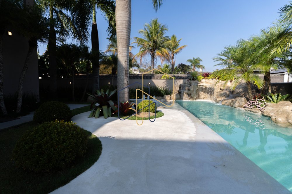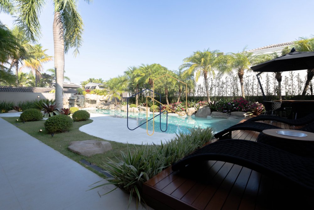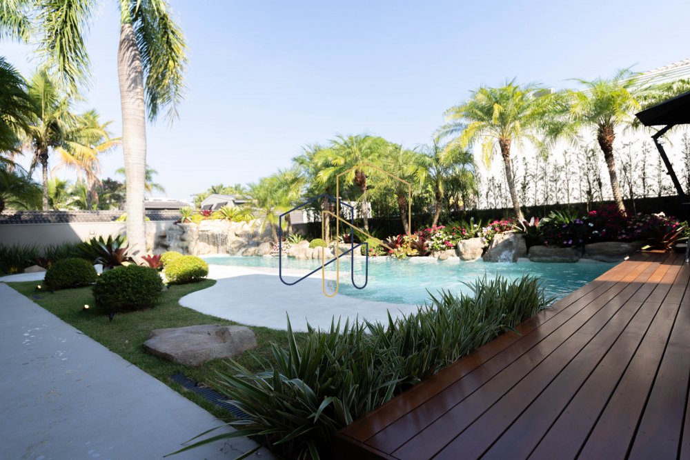 Lazer surpreendente com paisagismo, piscina com cascata e espaço gourmet