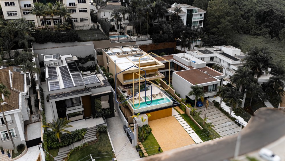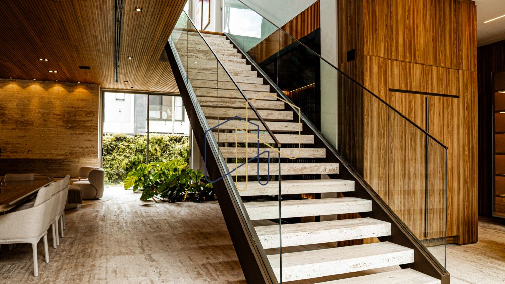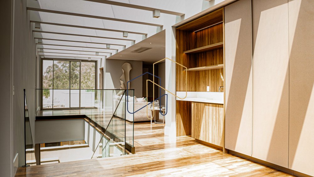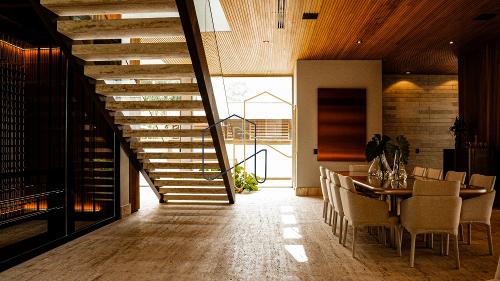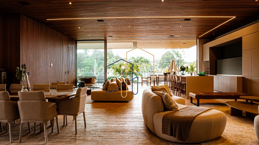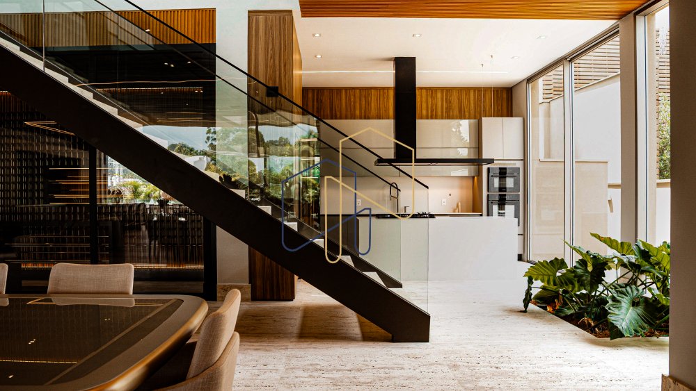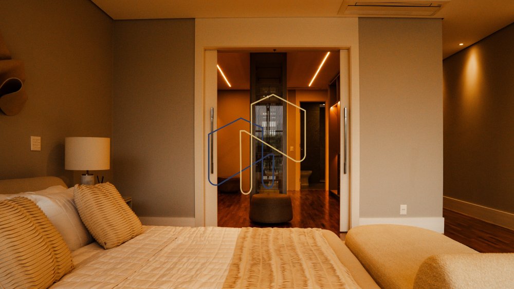 Mármore travertino bruto, inclusive dentro da piscina, armários ID, goumert com armário Valcuccine, ar condicionado com grelhas/difusores no térreo, demais ambientes com cassete, som ambiente com multiroon digital e caixas da marca Focal. Tomadas carros elétricos.