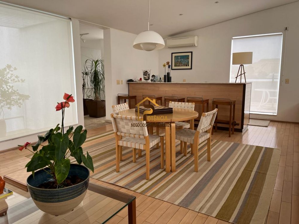 Projeto de Roberto Loed, com iluminação em todos os ambientes, salas integradas a área de lazer, acabamento em mármore Trávertino, armários