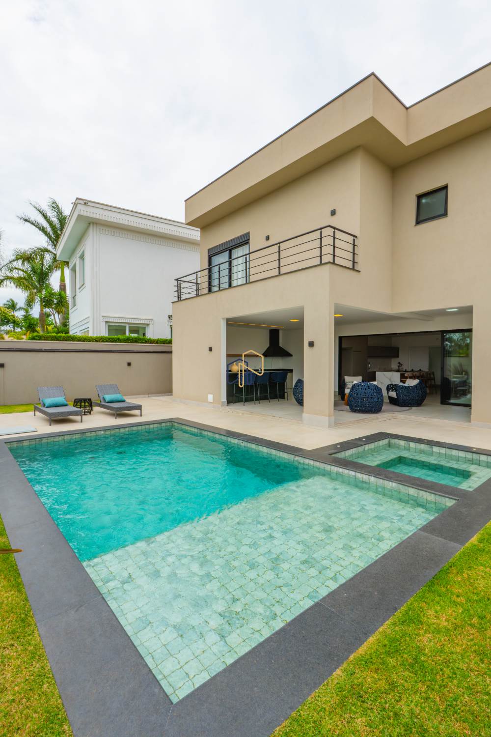 Piso superior em madeira maciça com 4 suítes, sendo 1 suíte master com banheira e sacada
