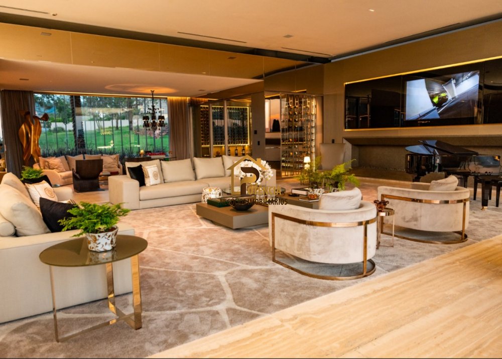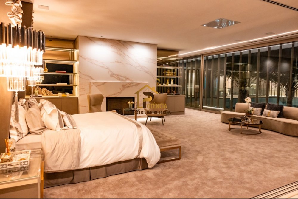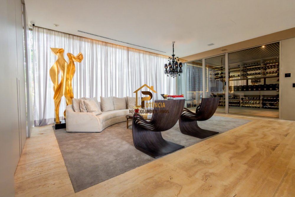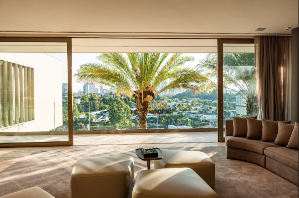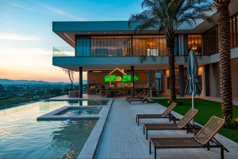 Situada no cume do exclusivo condomínio Tamboré 2, a Mansão Diamante é considerada o "Masterpice" dos projetos contemporâneos da Mapa Group. Esta esplendorosa Mansão possui 3.323m² de área construída coberta e descoberta e certamente um dos seus destaques é a vista panorâmica espetacular e privativa de tirar o folego . Com uma exuberante fachada moderna composta por brises asas de avião de alumínio, grandiosa porta de entrada, espelho d’água e jardim vertical natural, possui um espaçoso port-cochere para acesso de carros que leva até a garagem panorâmica com espaço coberto para 9 carros livres e 18 total. O hall de entrada possui pé direito duplo e escada escultural, que encanta a todos. A sala de jantar foi projetada com mesa de 5 metros em onix iluminado e lustres de cristal pretos estilo baccarat. No living foi projetada grandiosa lareira a gás de 5 metros, toda revestida em Armani Gris, piano Yamaha, carpetaria dos ambientes todas embutidas estilo hotelaria e integrado ao lounge, adega design climatizada toda em vidro com capacidade para mais de 1.000 garrafas. O mobiliário é todo artefacto. No escritório se destaca parede wall mirror com mapa mundi iluminado para colecionar os destinos de viagens. E ainda conectado ao living um espaço de convivência do piano bar com destaque para ilha bar com pedra Onix iluminado com chuva de 48 pendentes dourados suspensos formando uma cascata. As esquadrias que se abrem para a grandiosa área externa são envolvida em um estacionamento, garantindo total integração entre ambiente interno e externo. O ambiente externo é composto pela aconchegante área de lareira com lindo jardim vertical natural, grandiosa piscina com borda infinita, toda revestida em mármore navona, revestimento esse que envelopa toda a casa literalmente de forma uniforme e surpreendente. O Amplo espaço gourmet com ilha em Calacata com 8 metros de comprimento e uma mega tela de vídeo wall com mais de 5 metros com um espetáculo de imagem, alem da churrasqueira, forno de pizza e gavetas refrigeradas garantindo grande infraestrutura para todos os tipos de eventos. A ampla cozinha toda revestida em calacata e equipada pelos equipamentos da Viking é facilmente acessada pelo gourmet. No piso inferior além da garagem, foi contemplado luxuoso Spa com piscina aquecida com teto espelhado, lustres estilo baccarat e vista panoramica, contando ainda com sala de massagem e sauna. A área de serviço fica totalmente reclusa e possui 2 suítes de serviço, living e cozinha de funcionarios, alem de ampla lavanderia e casa de maquina O andar superior é composto por uma ala exclusiva pela grandiosa suíte master, que se destaca pelo requinte na decoração, seu grandioso closet, ampla sala de banho e ainda conta com grandiosa lareira a lenha, toda revestida em calacata. A vista da suíte master também é de tirar o folego e possui uma grandiosa varanda. Passando pela passarela, é possível acessar o lindo home bar que é uma antessala para o cinema, com infraestrutura para atender o serviço de copa deste pavimento. O luxuoso cinema possui 2 andares e grandiosa tela com projetor em resolução 4K, poltronas automatizadas, todo o espaço é revestido em veludo e com manta acústica. Este pavimento possui, além da suíte master, mais 5 suítes finamente acabadas e decoradas. Outro grande destaque desta mansão é a tecnológica infraestrutura envolvida: São 2 modernos elevadores da marca Otis; A mansão é totalmente automatizada pela Scenario; A casa possui ar condicionado em todas as áreas fechadas com sistema linear; Contemplado sistema de captação de energia fotovoltaico; Gerador instalado.