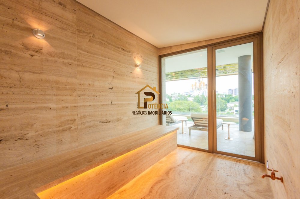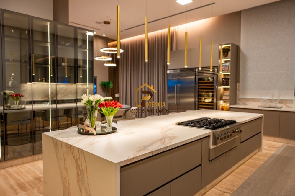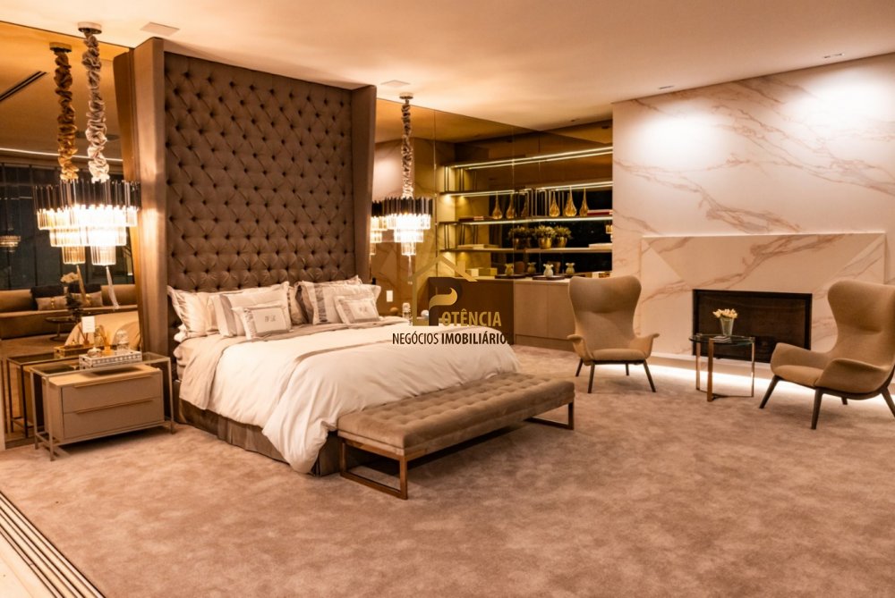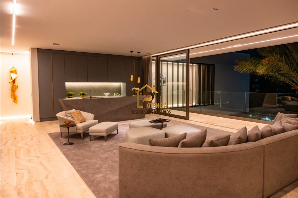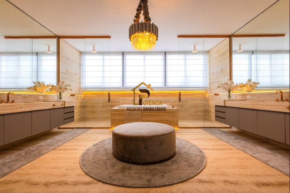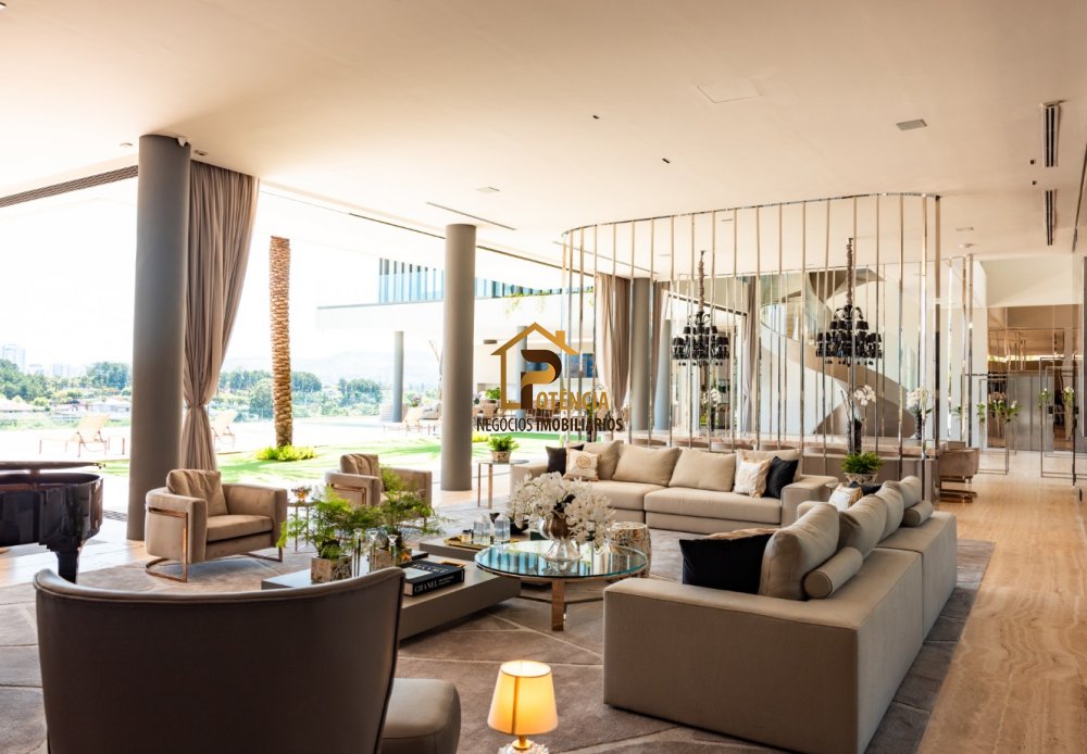 Situada no cume do exclusivo condomínio Tamboré 2, a Mansão Diamante é considerada o "Masterpice" dos projetos contemporâneos da Mapa Group. Esta esplendorosa Mansão possui 3.323m² de área construída coberta e descoberta e certamente um dos seus destaques é a vista panorâmica espetacular e privativa de tirar o folego . Com uma exuberante fachada moderna composta por brises asas de avião de alumínio, grandiosa porta de entrada, espelho d’água e jardim vertical natural, possui um espaçoso port-cochere para acesso de carros que leva até a garagem panorâmica com espaço coberto para 9 carros livres e 18 total. O hall de entrada possui pé direito duplo e escada escultural, que encanta a todos. A sala de jantar foi projetada com mesa de 5 metros em onix iluminado e lustres de cristal pretos estilo baccarat. No living foi projetada grandiosa lareira a gás de 5 metros, toda revestida em Armani Gris, piano Yamaha, carpetaria dos ambientes todas embutidas estilo hotelaria e integrado ao lounge, adega design climatizada toda em vidro com capacidade para mais de 1.000 garrafas. O mobiliário é todo artefacto. No escritório se destaca parede wall mirror com mapa mundi iluminado para colecionar os destinos de viagens. E ainda conectado ao living um espaço de convivência do piano bar com destaque para ilha bar com pedra Onix iluminado com chuva de 48 pendentes dourados suspensos formando uma cascata. As esquadrias que se abrem para a grandiosa área externa são envolvida em um estacionamento, garantindo total integração entre ambiente interno e externo. O ambiente externo é composto pela aconchegante área de lareira com lindo jardim vertical natural, grandiosa piscina com borda infinita, toda revestida em mármore navona, revestimento esse que envelopa toda a casa literalmente de forma uniforme e surpreendente. O Amplo espaço gourmet com ilha em Calacata com 8 metros de comprimento e uma mega tela de vídeo wall com mais de 5 metros com um espetáculo de imagem, alem da churrasqueira, forno de pizza e gavetas refrigeradas garantindo grande infraestrutura para todos os tipos de eventos. A ampla cozinha toda revestida em calacata e equipada pelos equipamentos da Viking é facilmente acessada pelo gourmet. No piso inferior além da garagem, foi contemplado luxuoso Spa com piscina aquecida com teto espelhado, lustres estilo baccarat e vista panoramica, contando ainda com sala de massagem e sauna. A área de serviço fica totalmente reclusa e possui 2 suítes de serviço, living e cozinha de funcionarios, alem de ampla lavanderia e casa de maquina O andar superior é composto por uma ala exclusiva pela grandiosa suíte master, que se destaca pelo requinte na decoração, seu grandioso closet, ampla sala de banho e ainda conta com grandiosa lareira a lenha, toda revestida em calacata. A vista da suíte master também é de tirar o folego e possui uma grandiosa varanda. Passando pela passarela, é possível acessar o lindo home bar que é uma antessala para o cinema, com infraestrutura para atender o serviço de copa deste pavimento. O luxuoso cinema possui 2 andares e grandiosa tela com projetor em resolução 4K, poltronas automatizadas, todo o espaço é revestido em veludo e com manta acústica. Este pavimento possui, além da suíte master, mais 5 suítes finamente acabadas e decoradas. Outro grande destaque desta mansão é a tecnológica infraestrutura envolvida: São 2 modernos elevadores da marca Otis; A mansão é totalmente automatizada pela Scenario; A casa possui ar condicionado em todas as áreas fechadas com sistema linear; Contemplado sistema de captação de energia fotovoltaico; Gerador instalado.