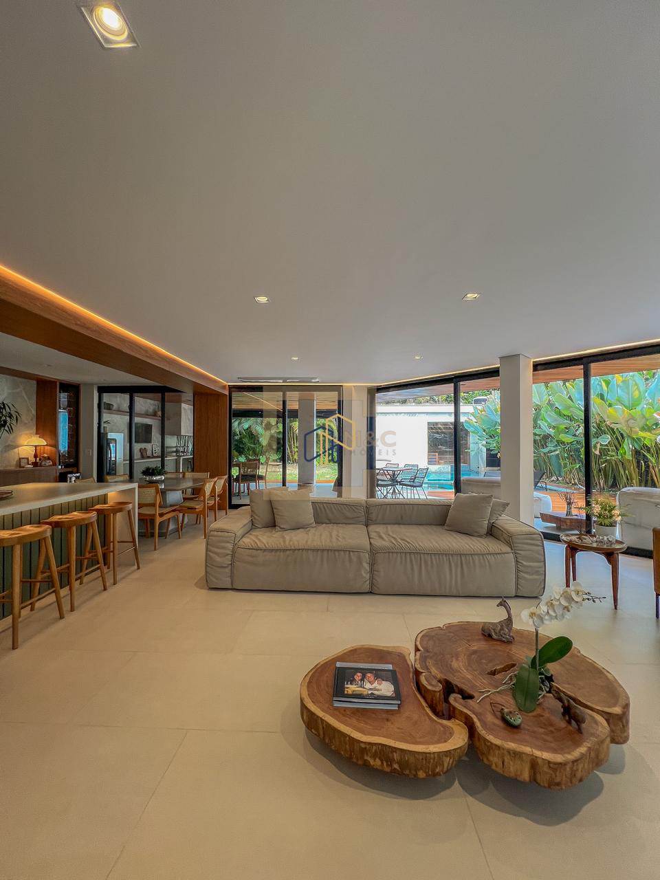 Casa moderna, integrada e completa. Ambientes amplos voltados para um jardim super gostoso com piscina, sauna e área gourmet.